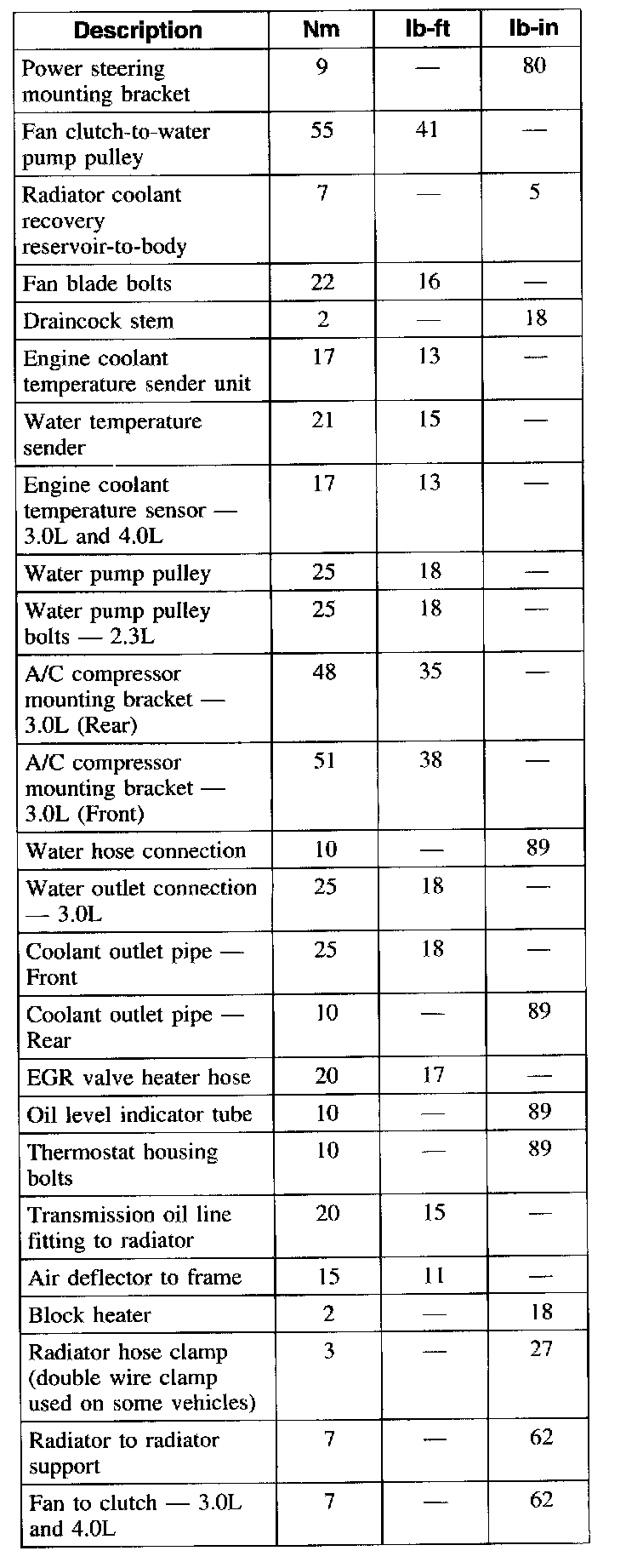 Torque Specifications