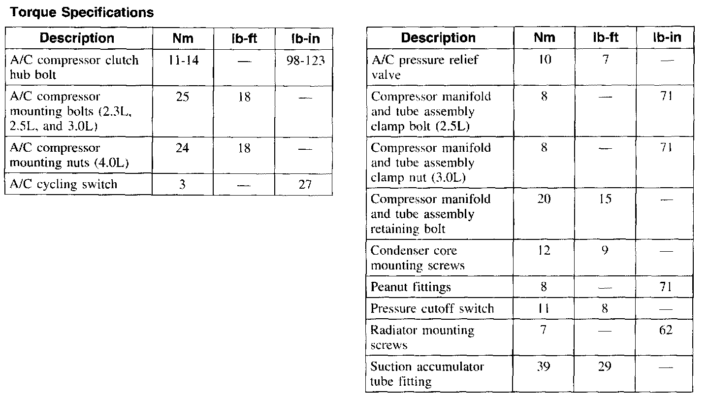 Torque Specifications: