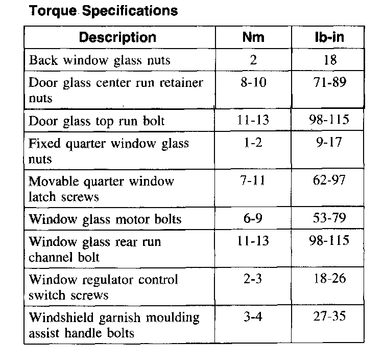 Torque Specifications: