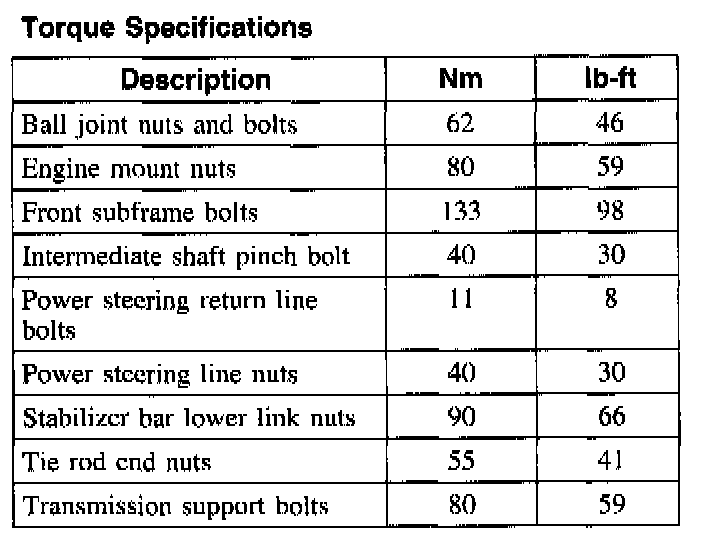 Torque Specifications: