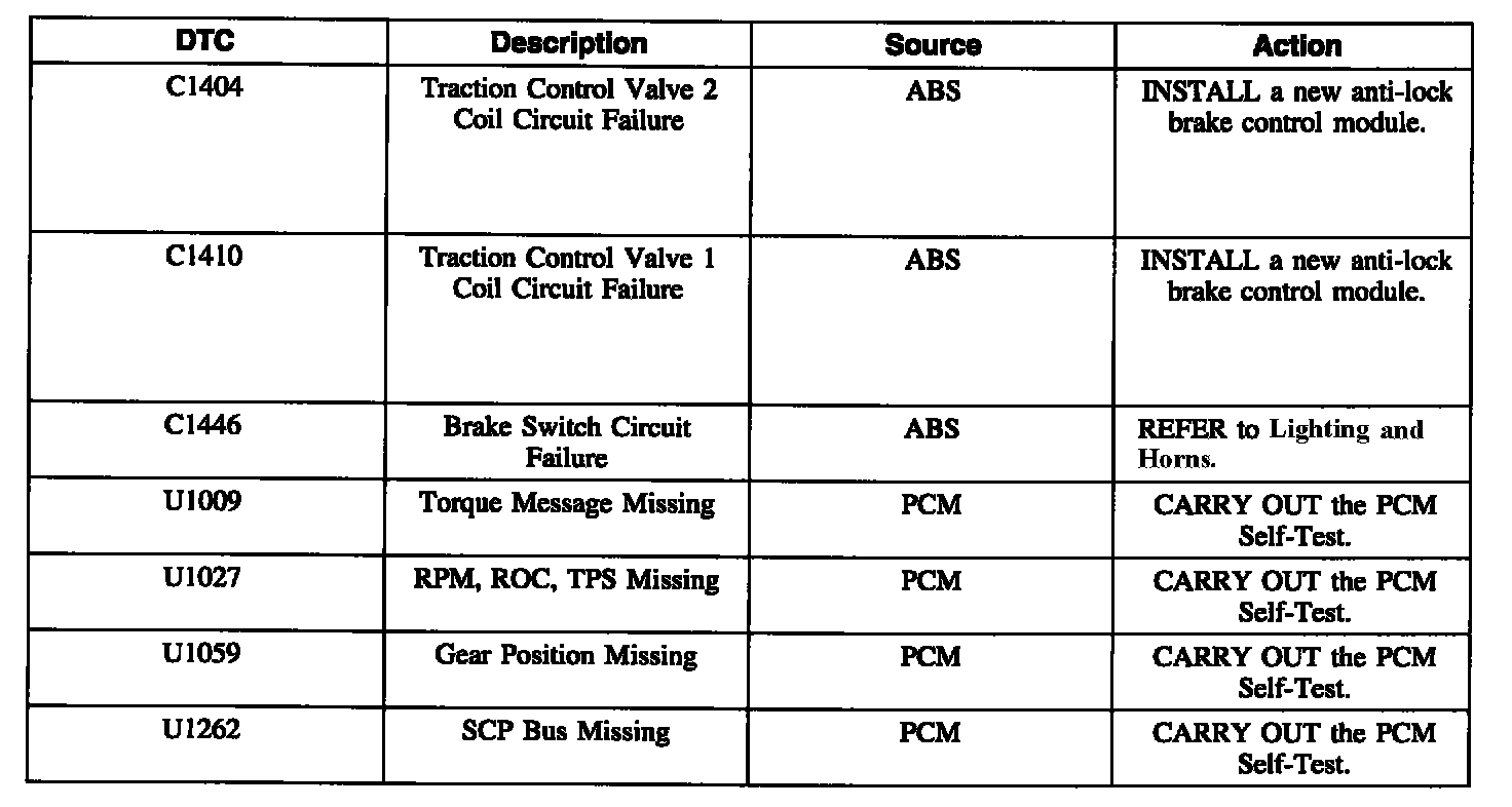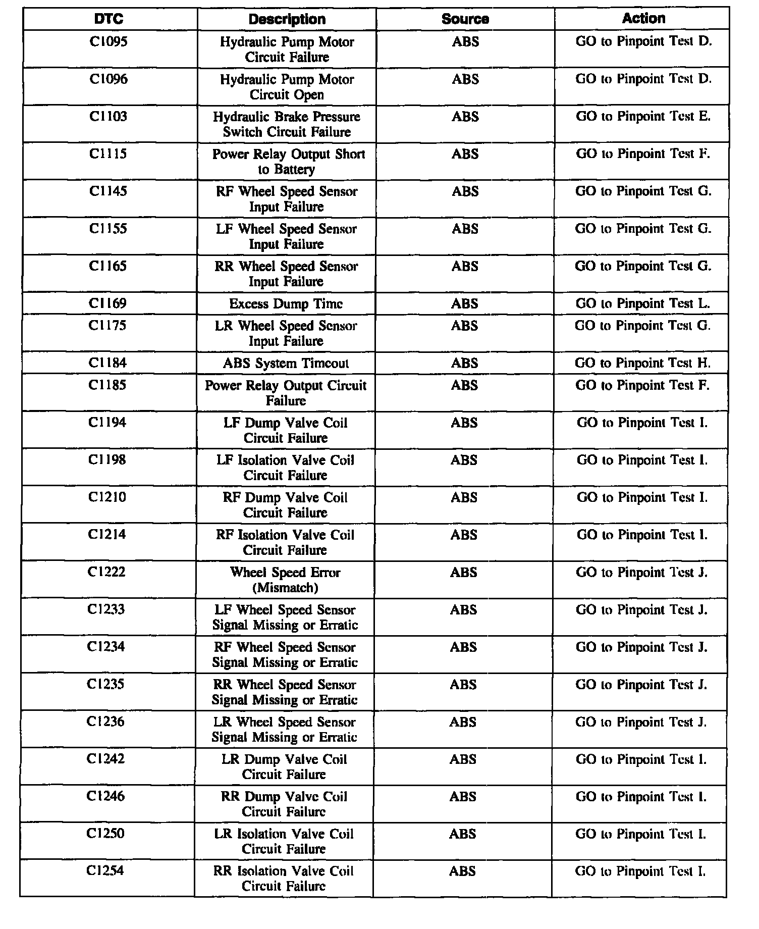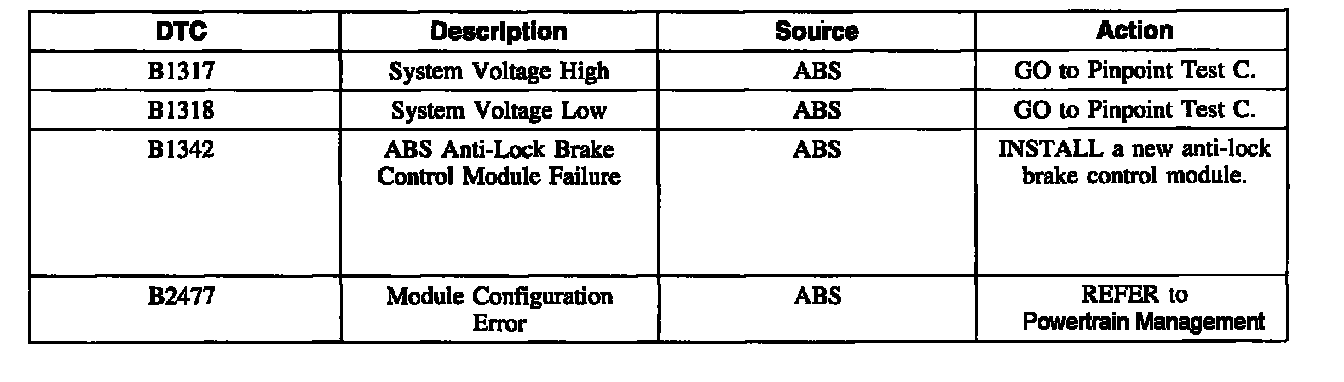 Anti-Lock Brake Control Module Diagnostic Trouble Code (DTC) Index