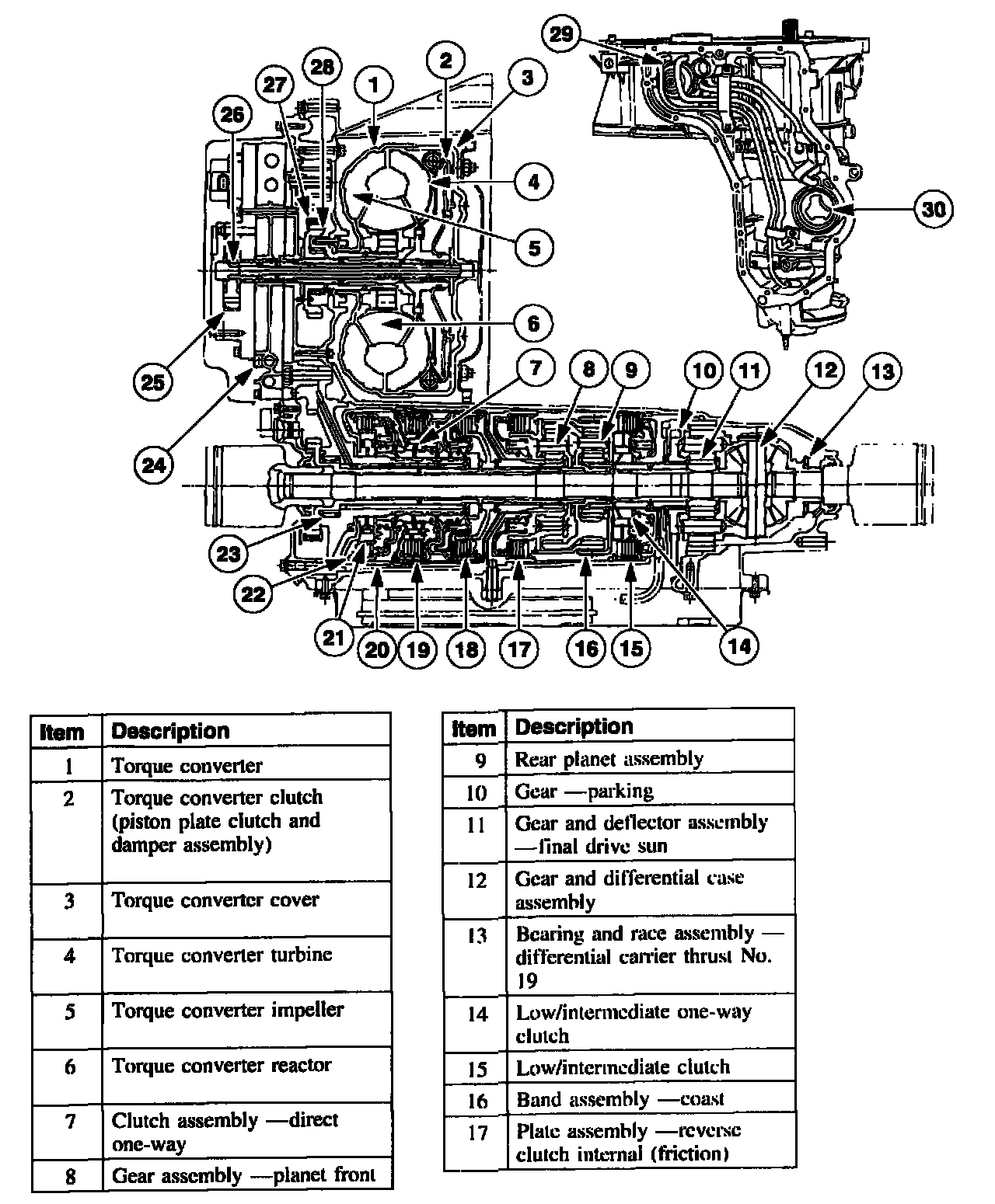 ^ Power is transmitted from the torque converter to the planetary gearsets and other components through the input shaft.