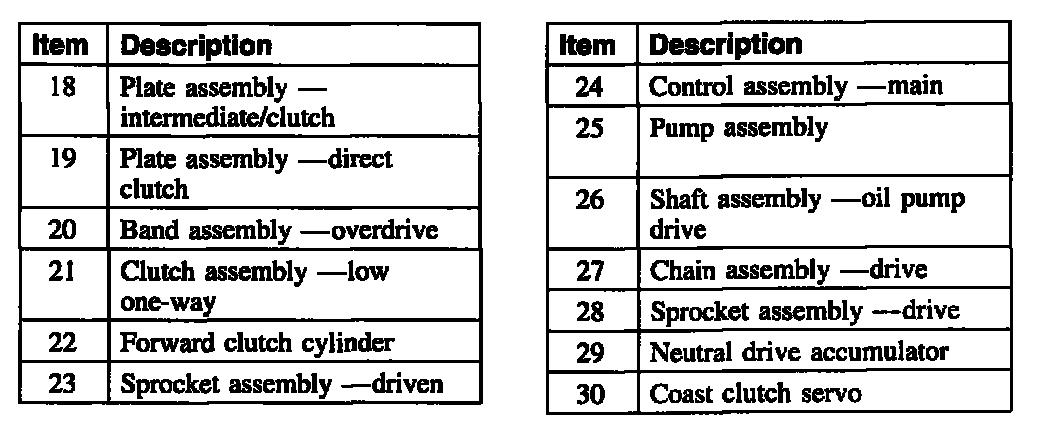 The direct one-way clutch transmits torque from the driven sprocket to the front planetary sun gear in third gear and provides engine braking in manual low in connection with the direct clutch.