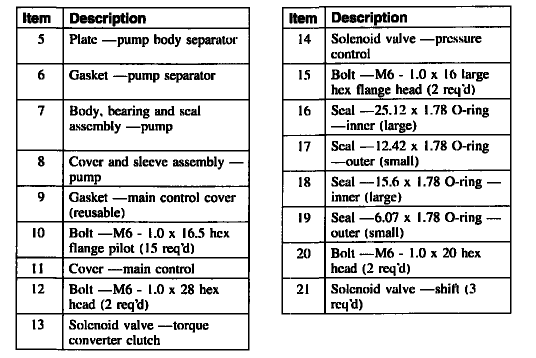 Gaskets are used for the separator plate between the pump body and valve body. The separator plate between the valve body and chain cover has integral gaskets.