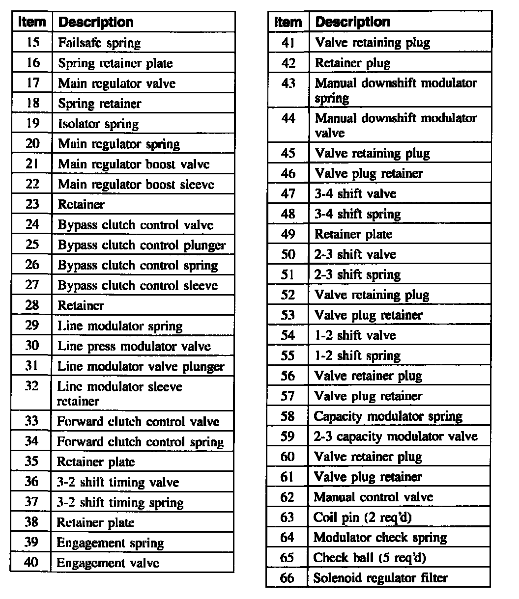 The low-intermediate one-way clutch connects the low-intermediate clutch to the rear planetary sun gear. The low-intermediate one-way clutch transmits torque during drive operation in first and second gear, as well as manual second and manual first gears.