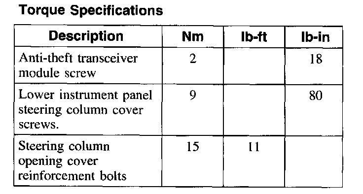 Torque Specifications:
