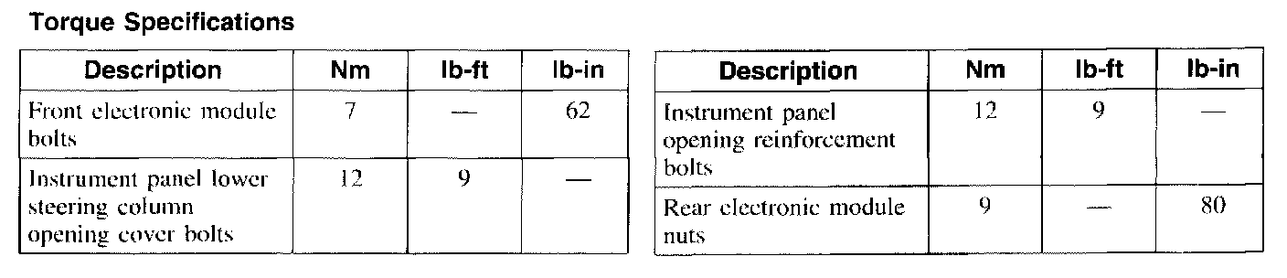 Torque Specifications: