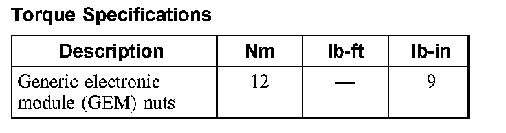 Torque Specifications: