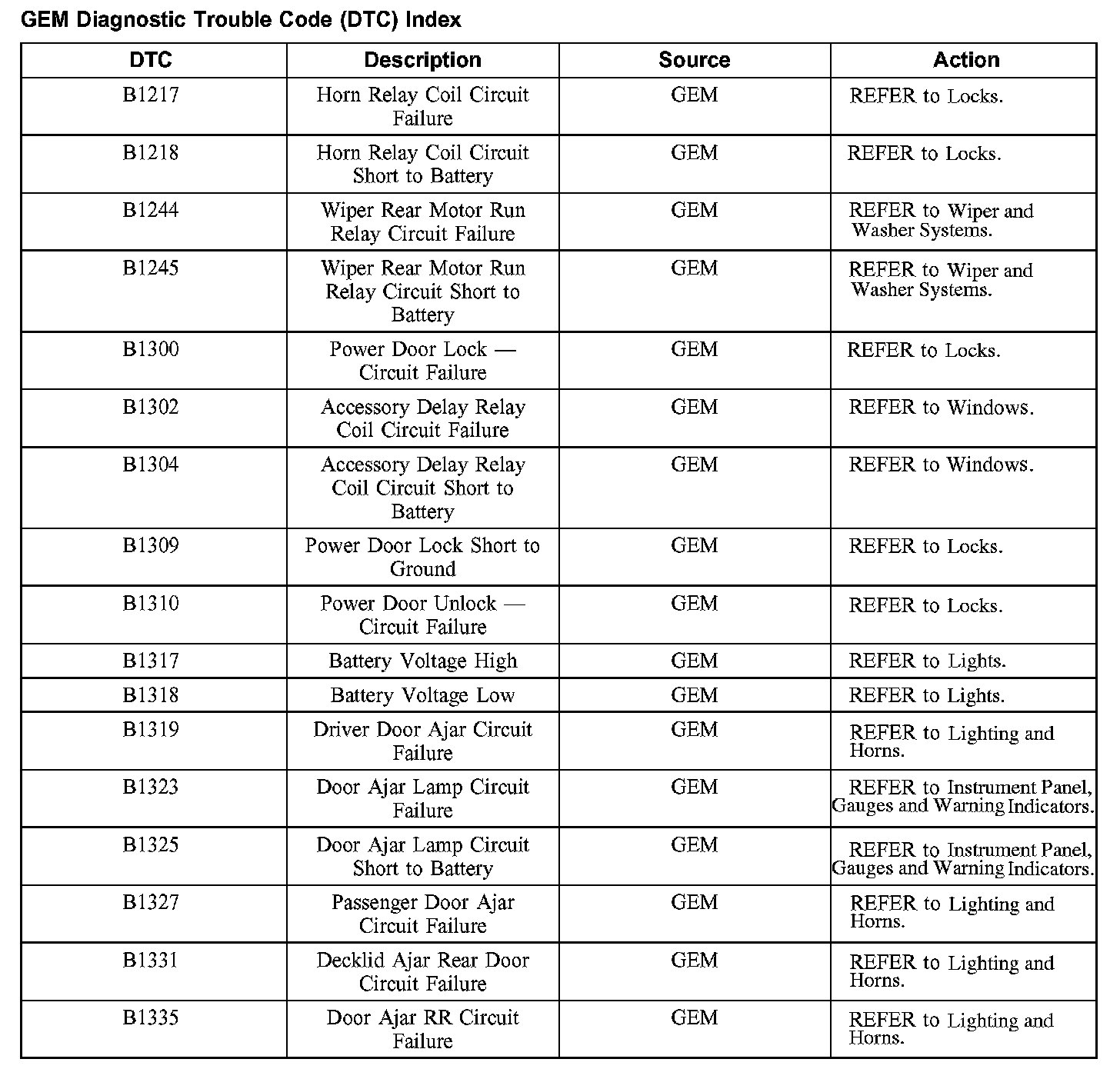 DTC Index B1217 - B1335: