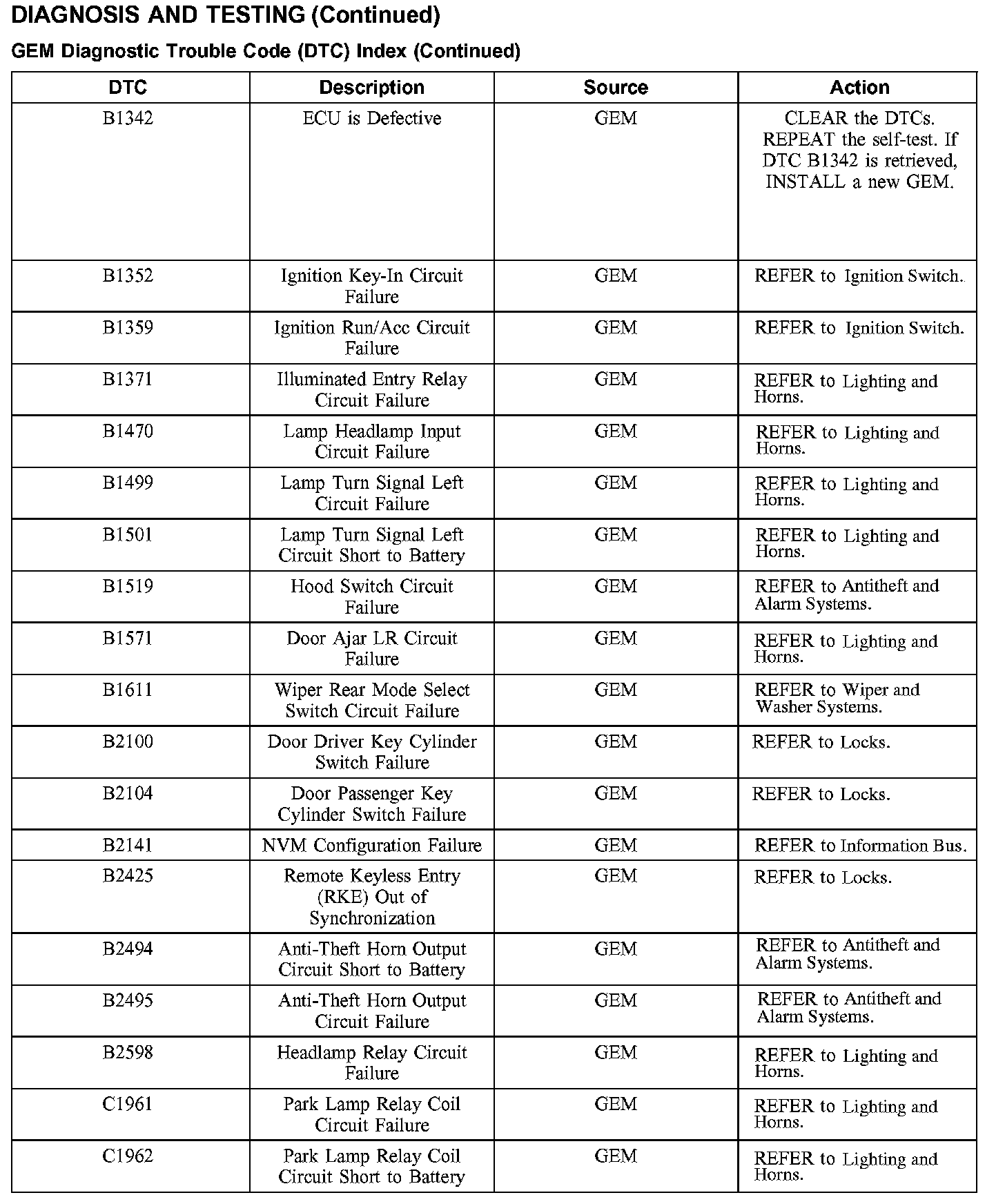 DTC Index B1342 - C1962: