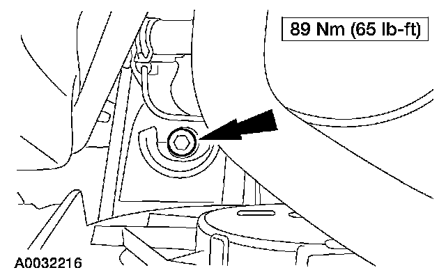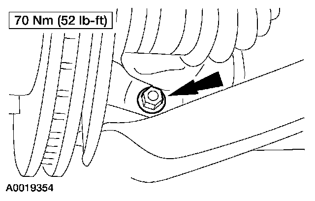 18. CAUTION: Do not allow the rear subframe bolts to come out of the lower control arm bushing.