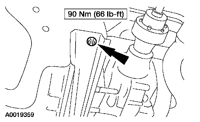 17. NOTE: Lower the rear of the engine to allow the subframe to clear the companion flange on the transfer case.