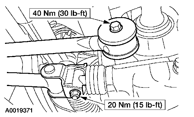 15. Remove the 2 bolts and disconnect the manual transmission shift linkage.