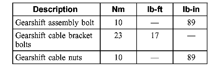 Torque Specifications: