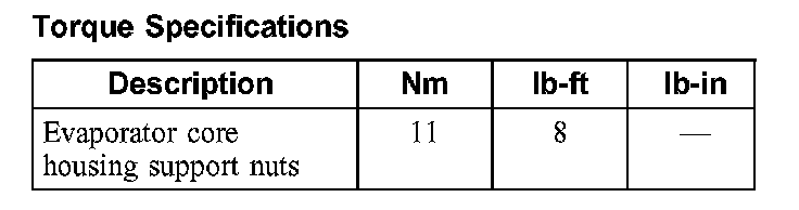Torque Specifications: