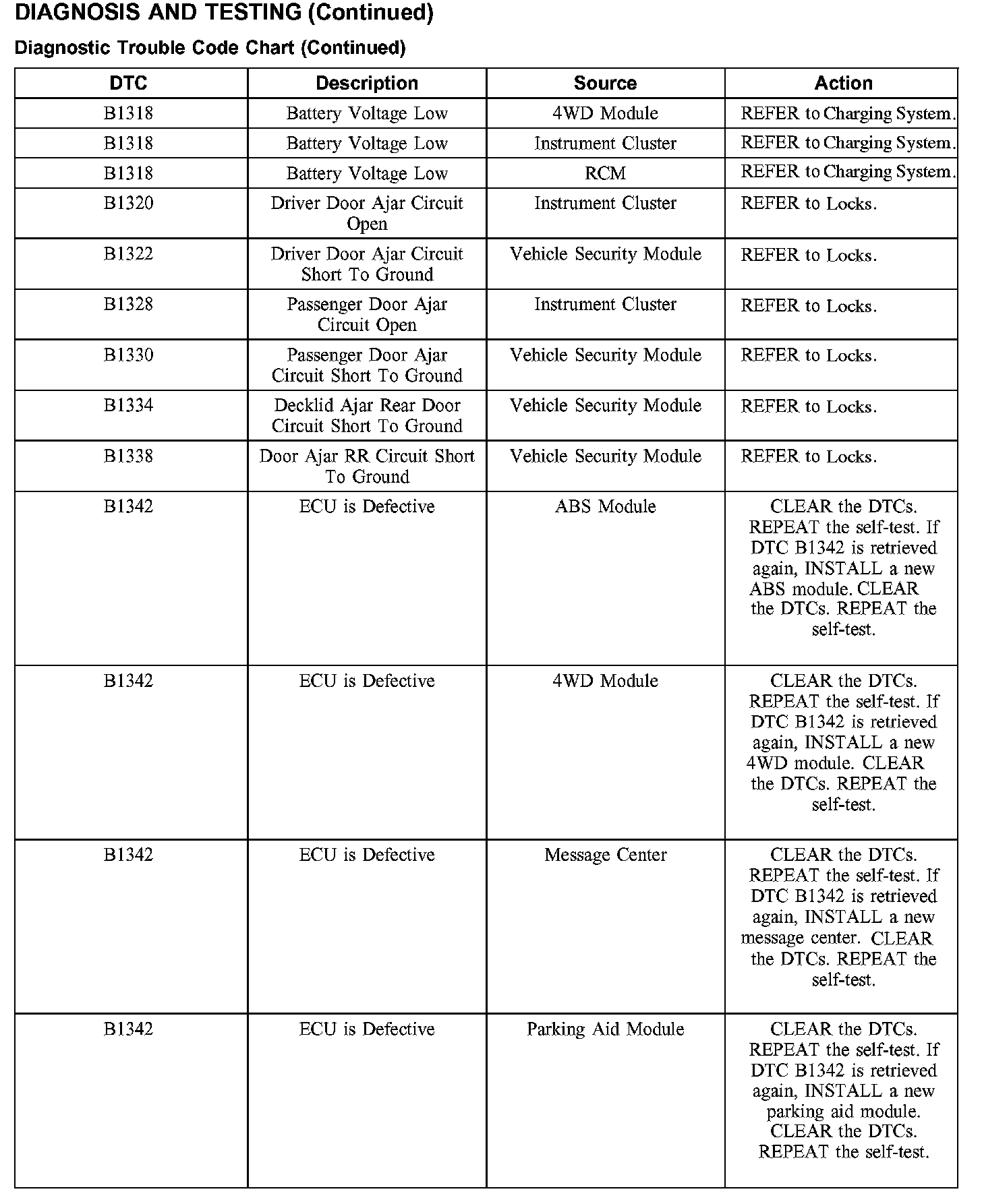 DIAGNOSTIC TROUBLE CODE CHARTDTC Chart B1201 - B1318: