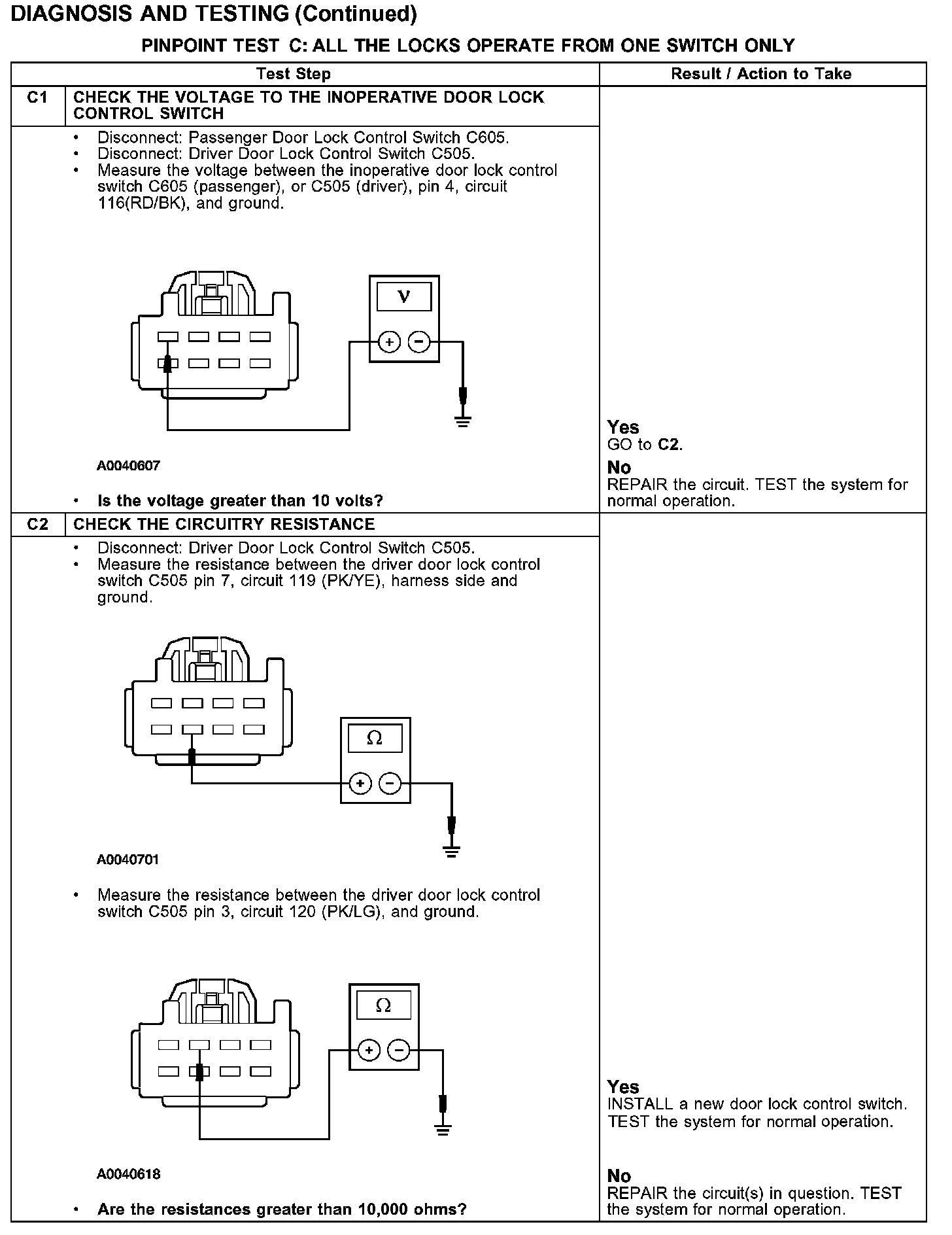 PINPOINT TEST C: ALL THE LOCKS OPERATE FROM ONE SWITCH ONLY