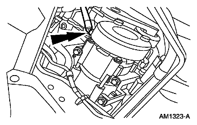 2. Remove the accessory drive belt from the A/C compressor pulley.