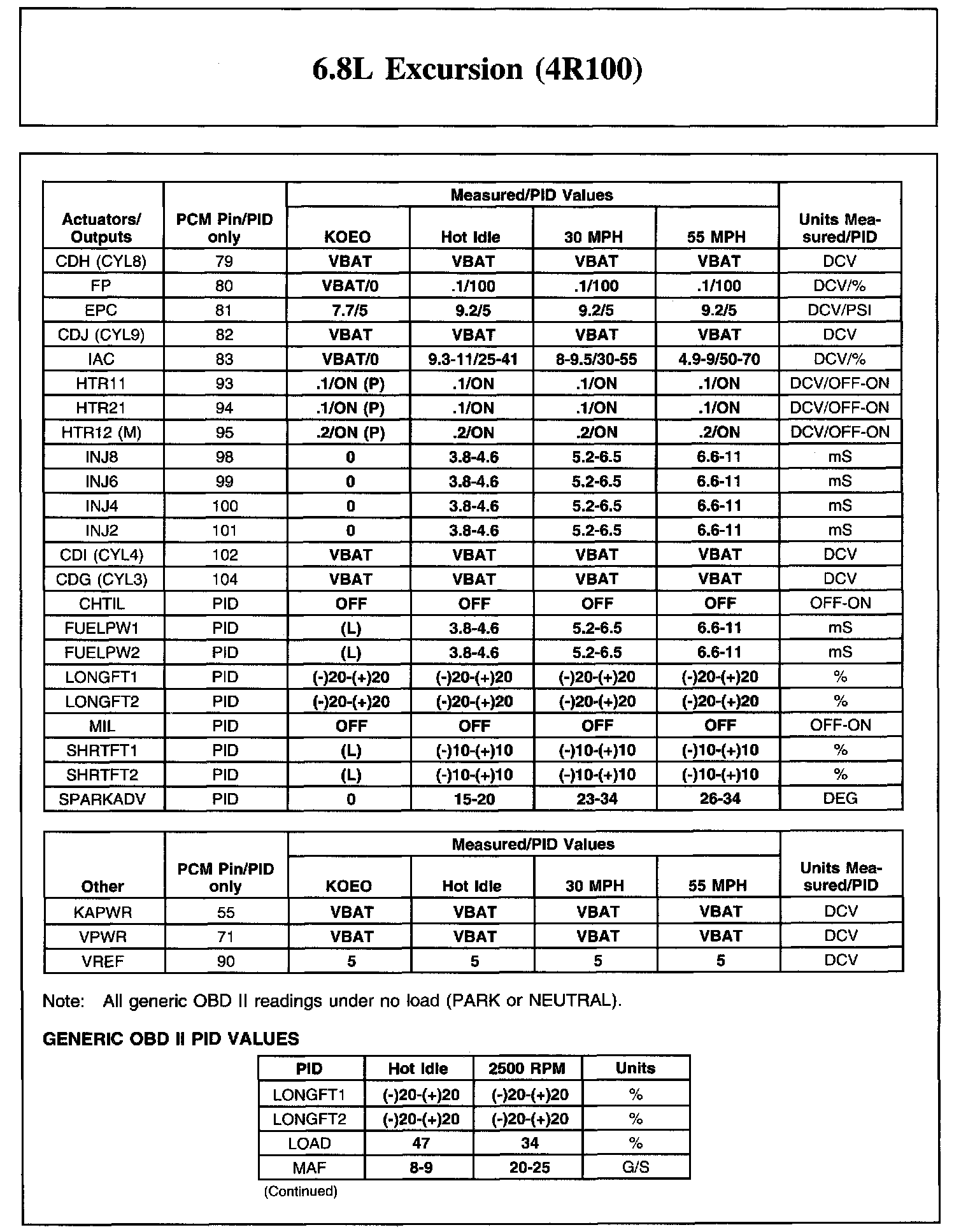 The Typical Diagnostic Reference Value Charts do not display fault PIDs. These are PIDs which indicate a hard fault with the circuit. They display a value of "YES" or "NO" and are PIDs ending with an "F".