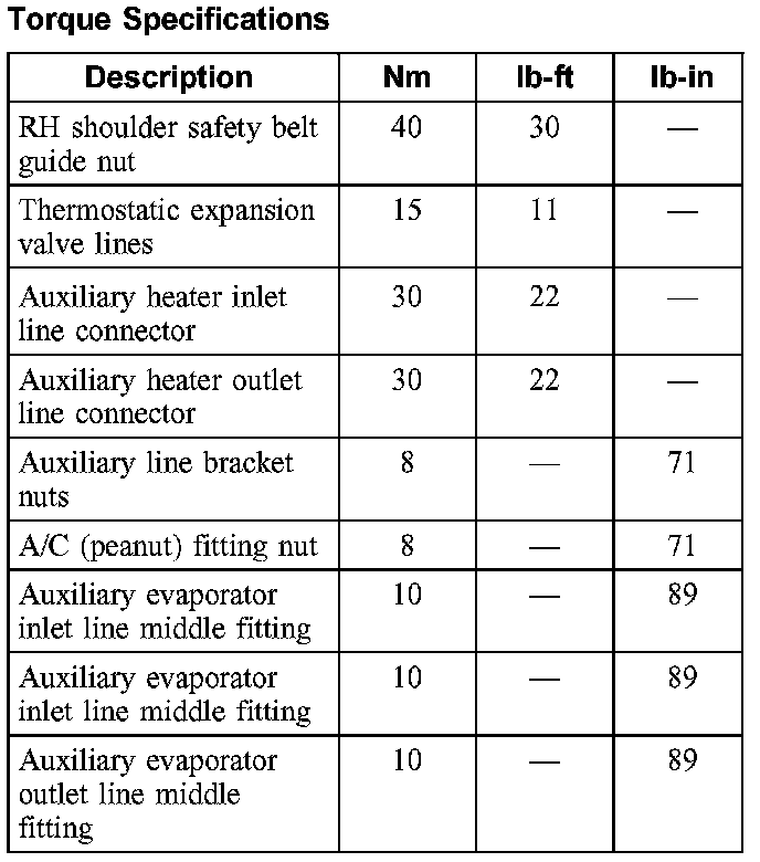 Torque Specifications:
