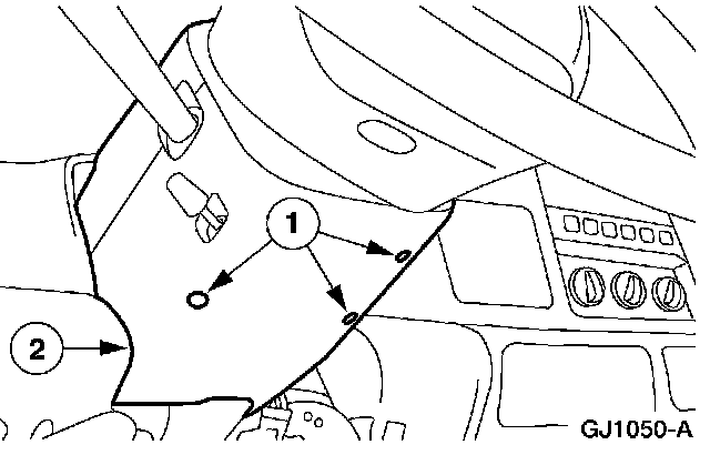 2. CAUTION: Use care when removing the instrument panel steering column cover or damage to the cover locating tab may occur.