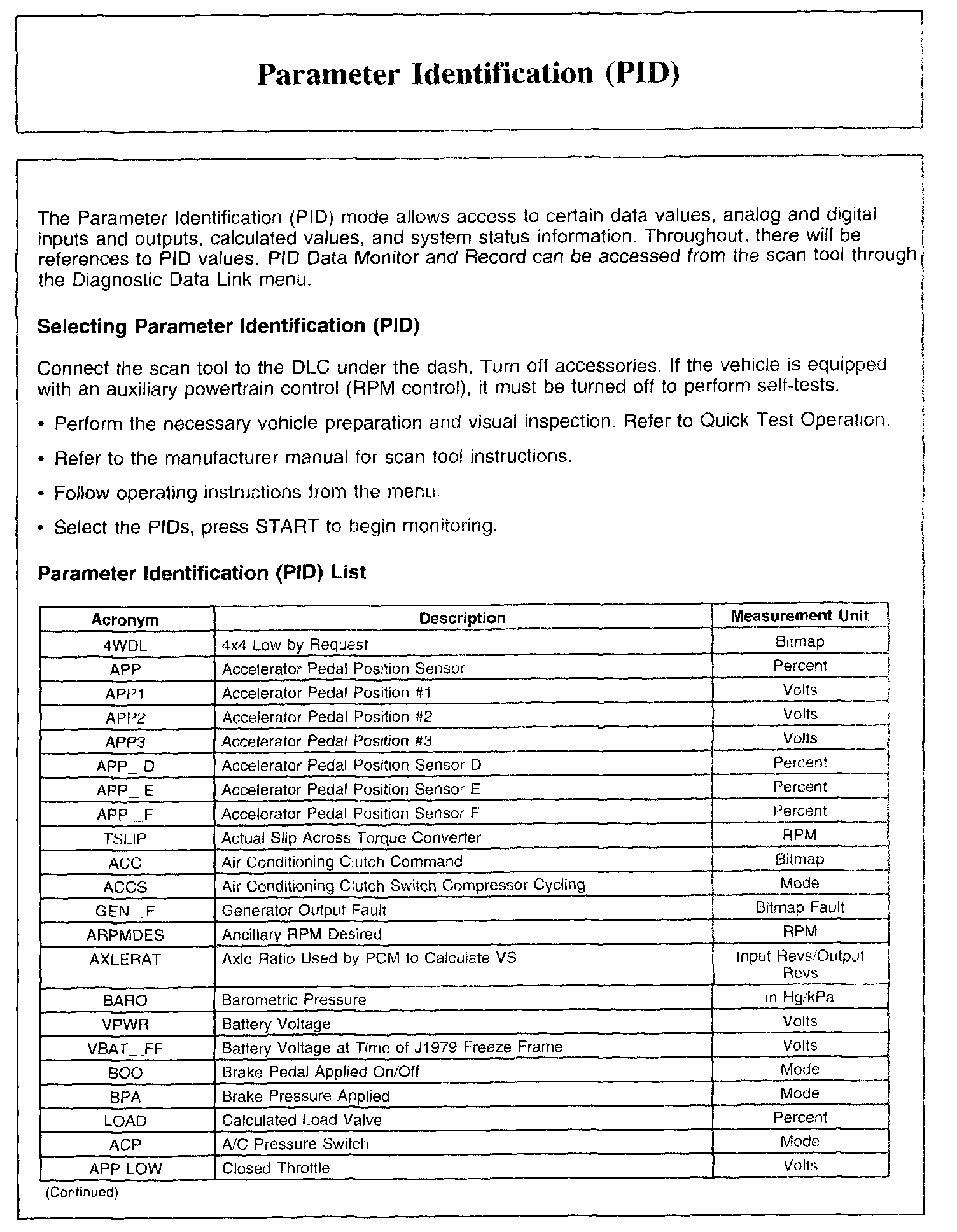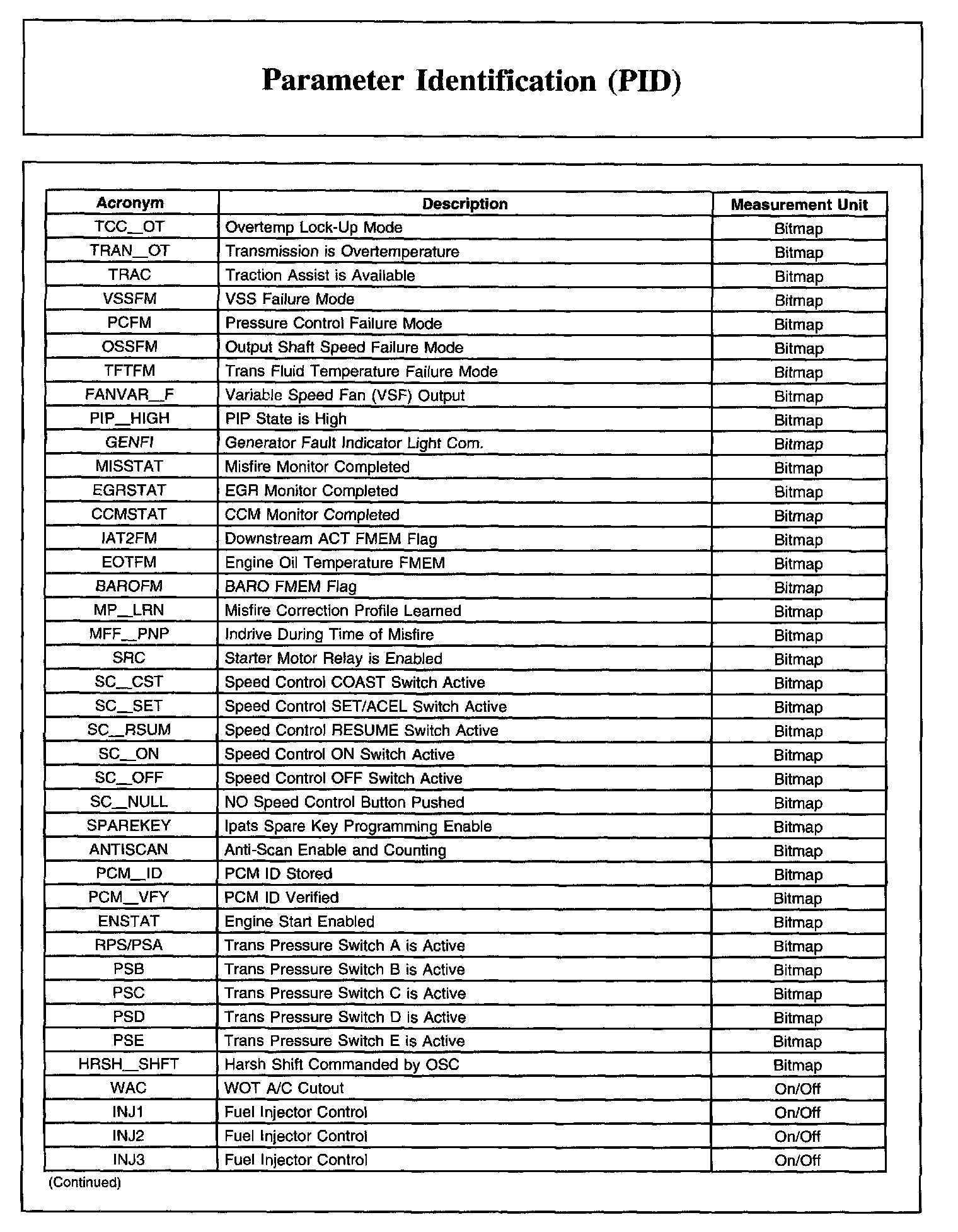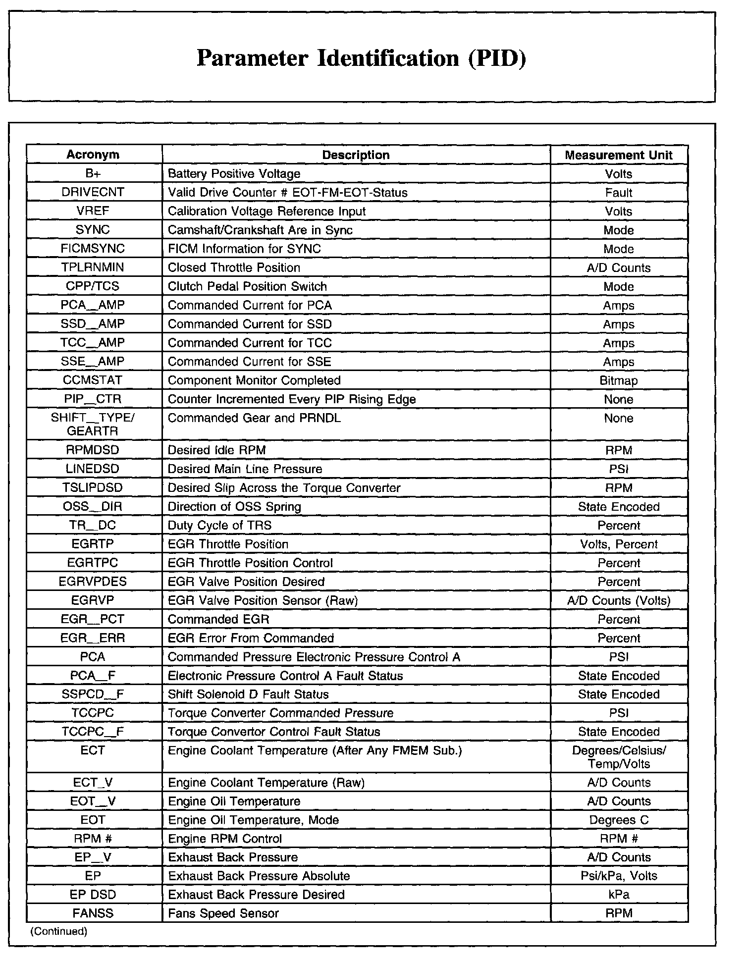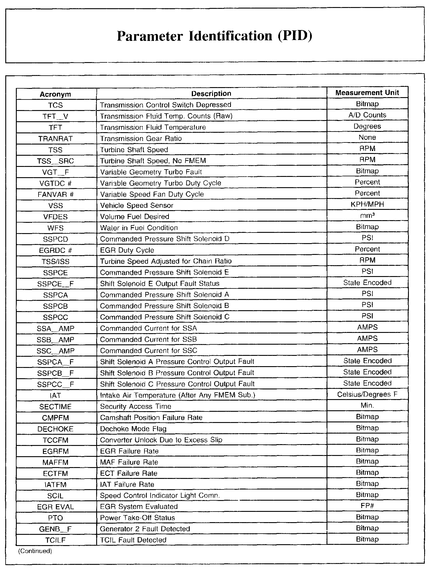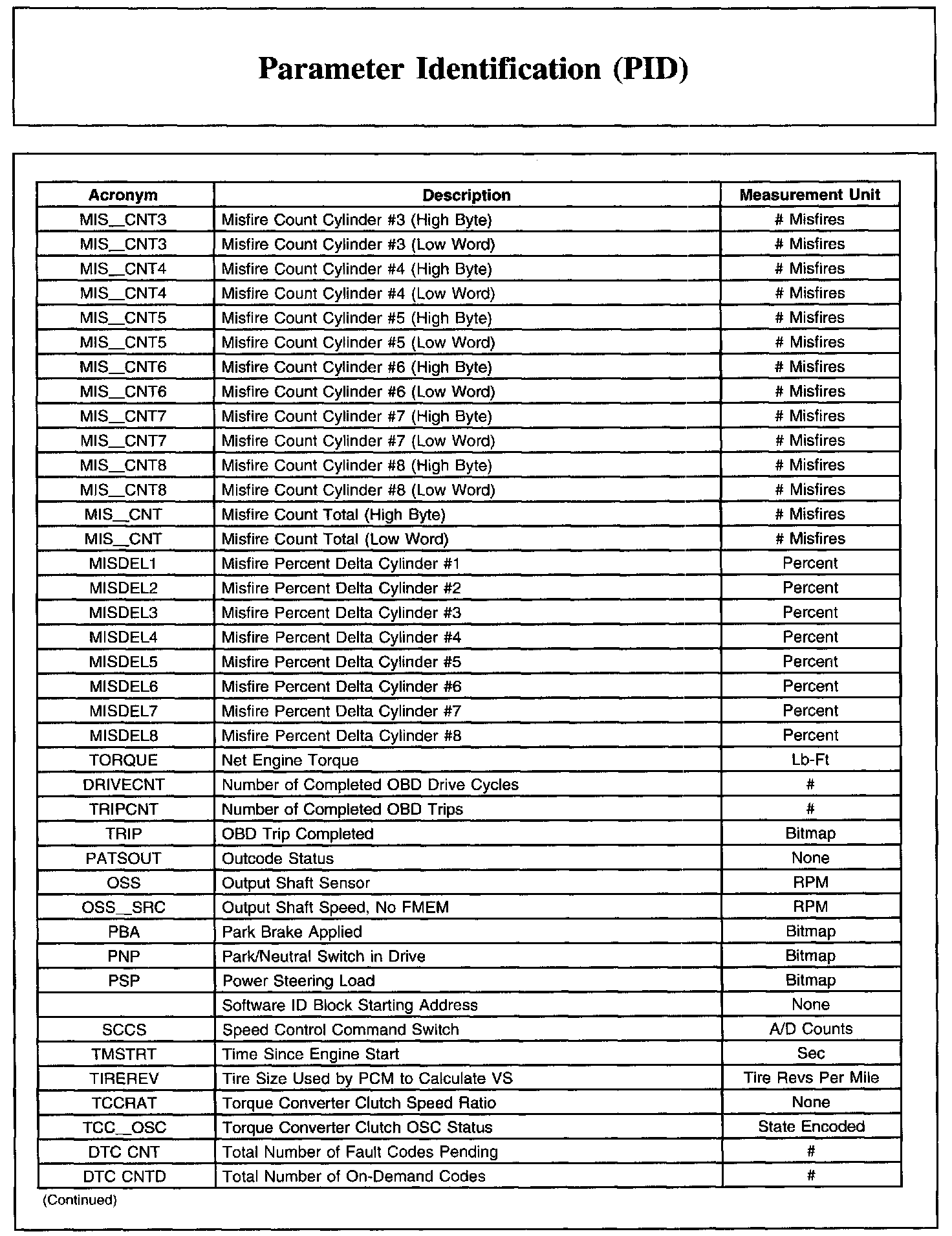 PARAMETER IDENTIFICATION (PID)Parameter Identification (PID) List, Part 1:
