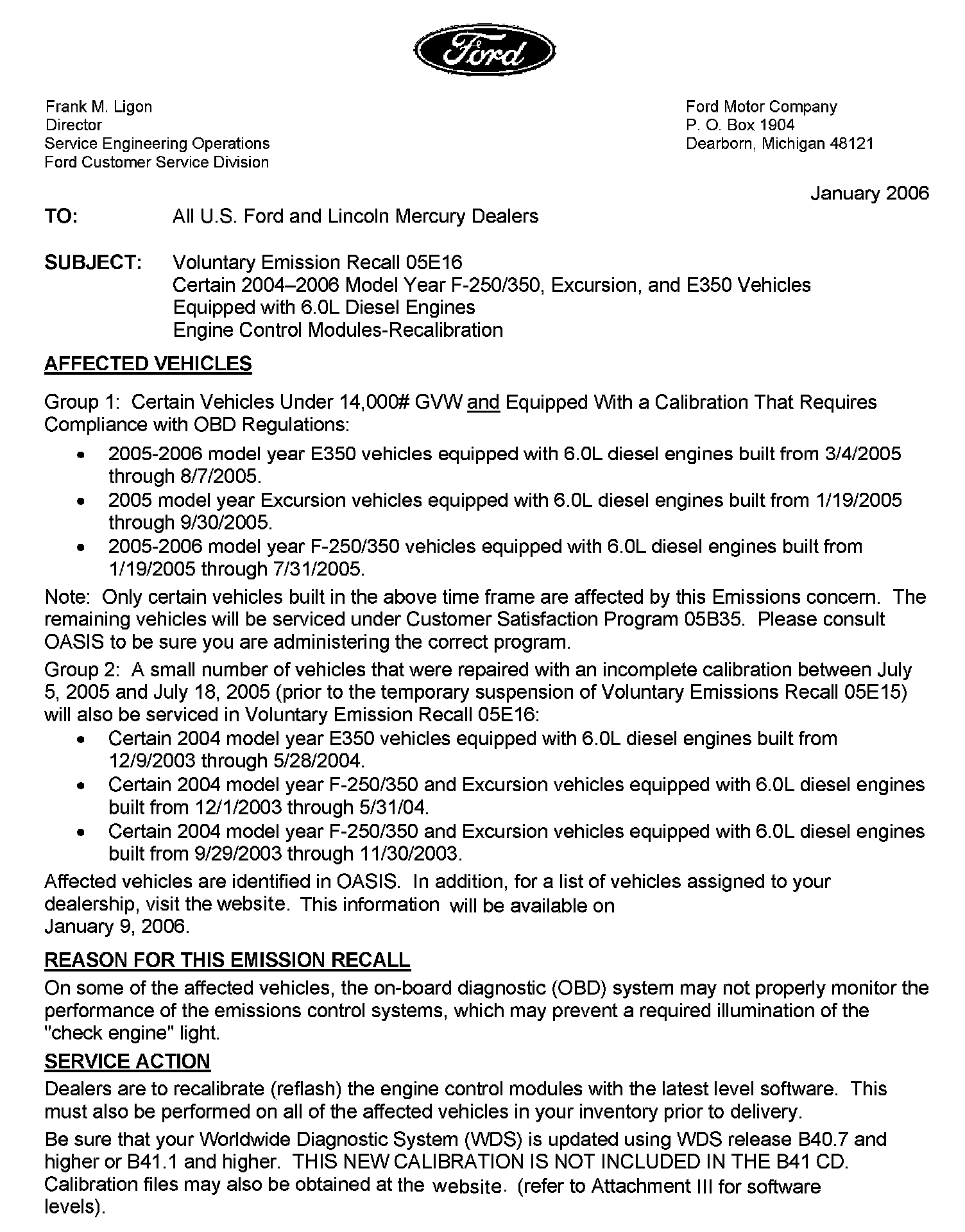 Excursion 2WD V8-6.0L DSL Turbo VIN P