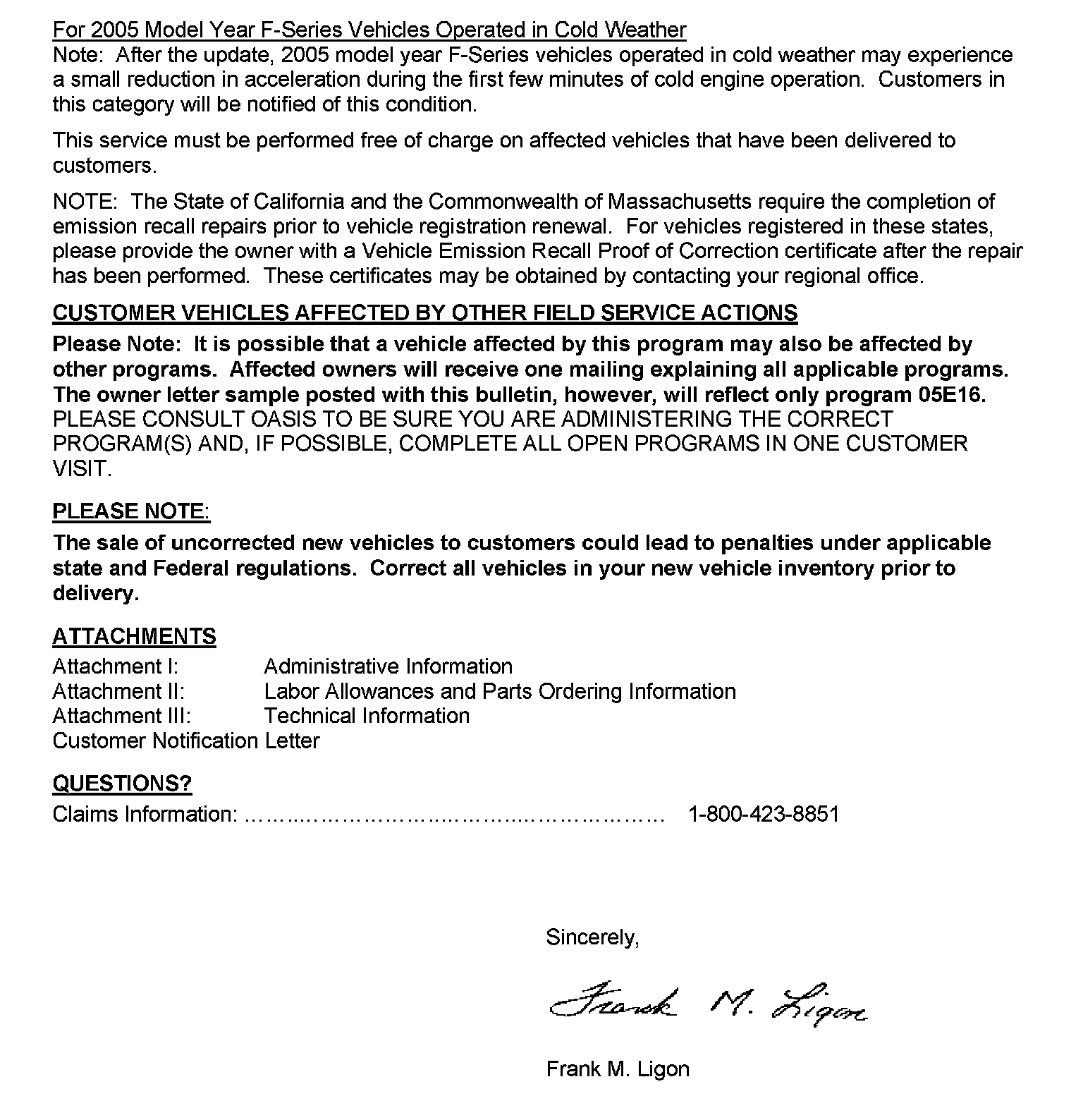 Recall - Engine Control Module Recalibration