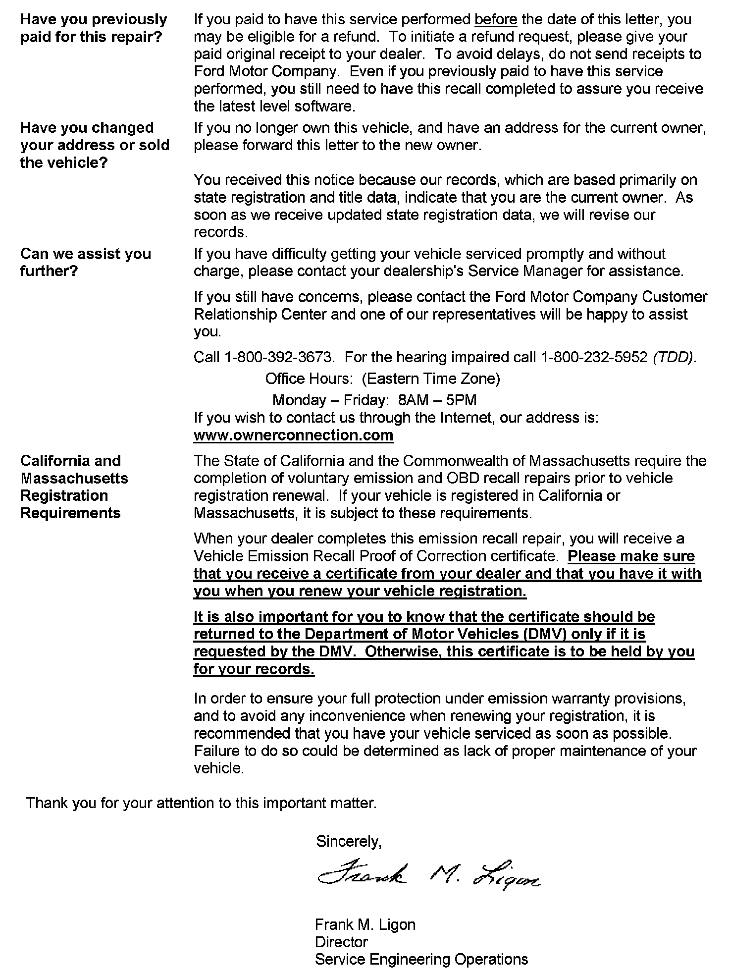 Recall - Engine Control Module Recalibration