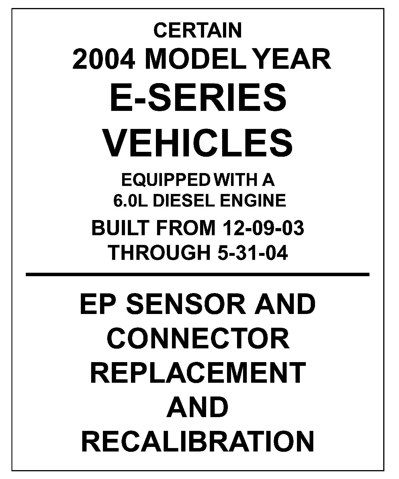The 2004 model year program involves replacing the exhaust pressure (EP) sensor and connector and recalibrating the powertrain control module (PCM), transmission control module (1CM) and the fuel injection control module (FICM) with the latest software.