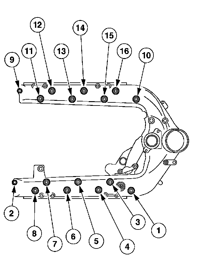 7 Tighten bolts 11 through 15 to 31 Nm (23 ft. lbs.).