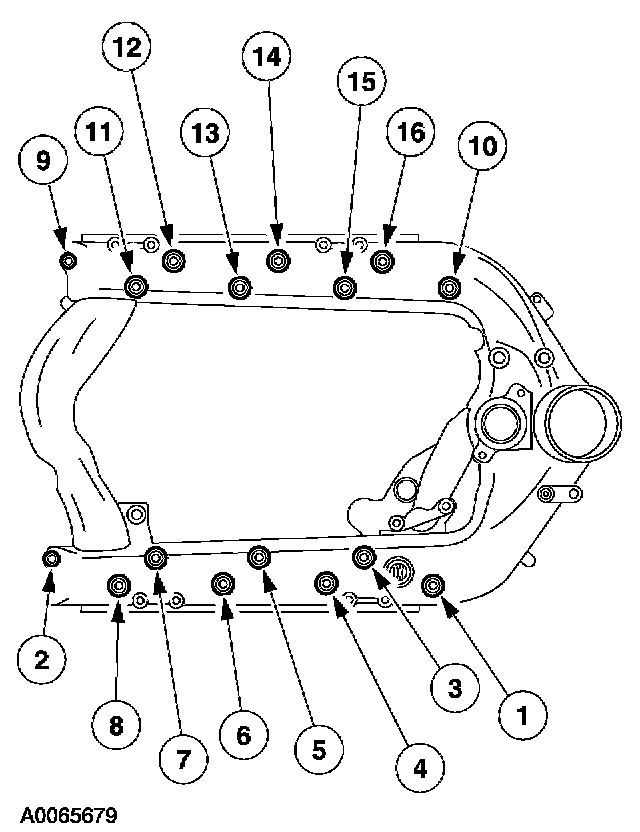 Install the intake manifold and bolts and tighten in the following sequence.