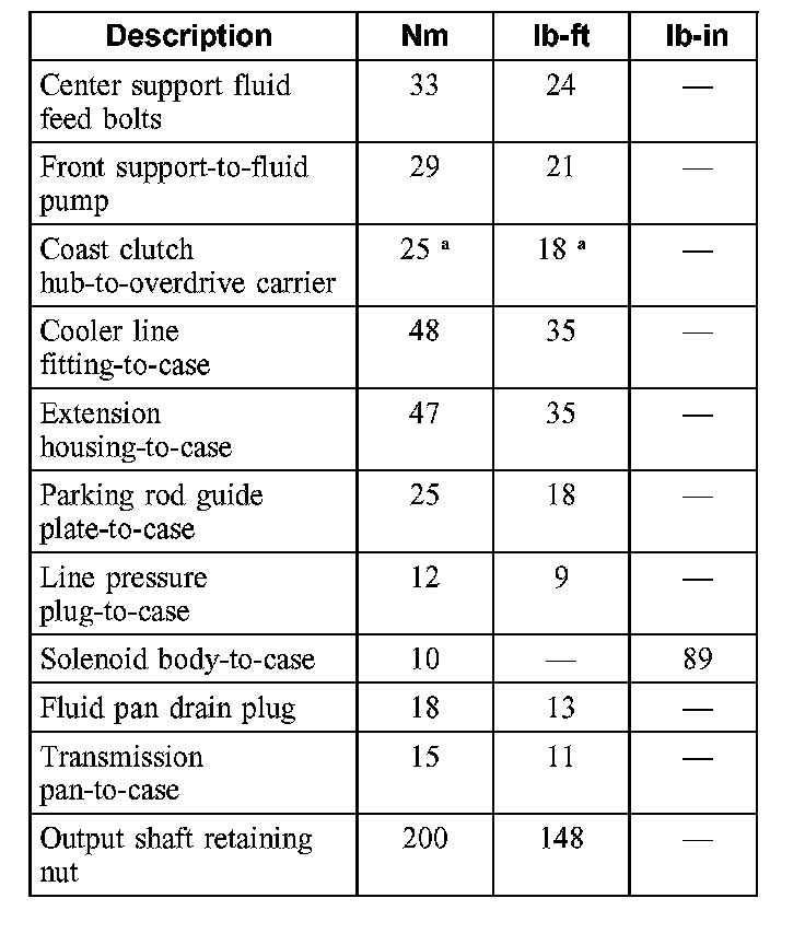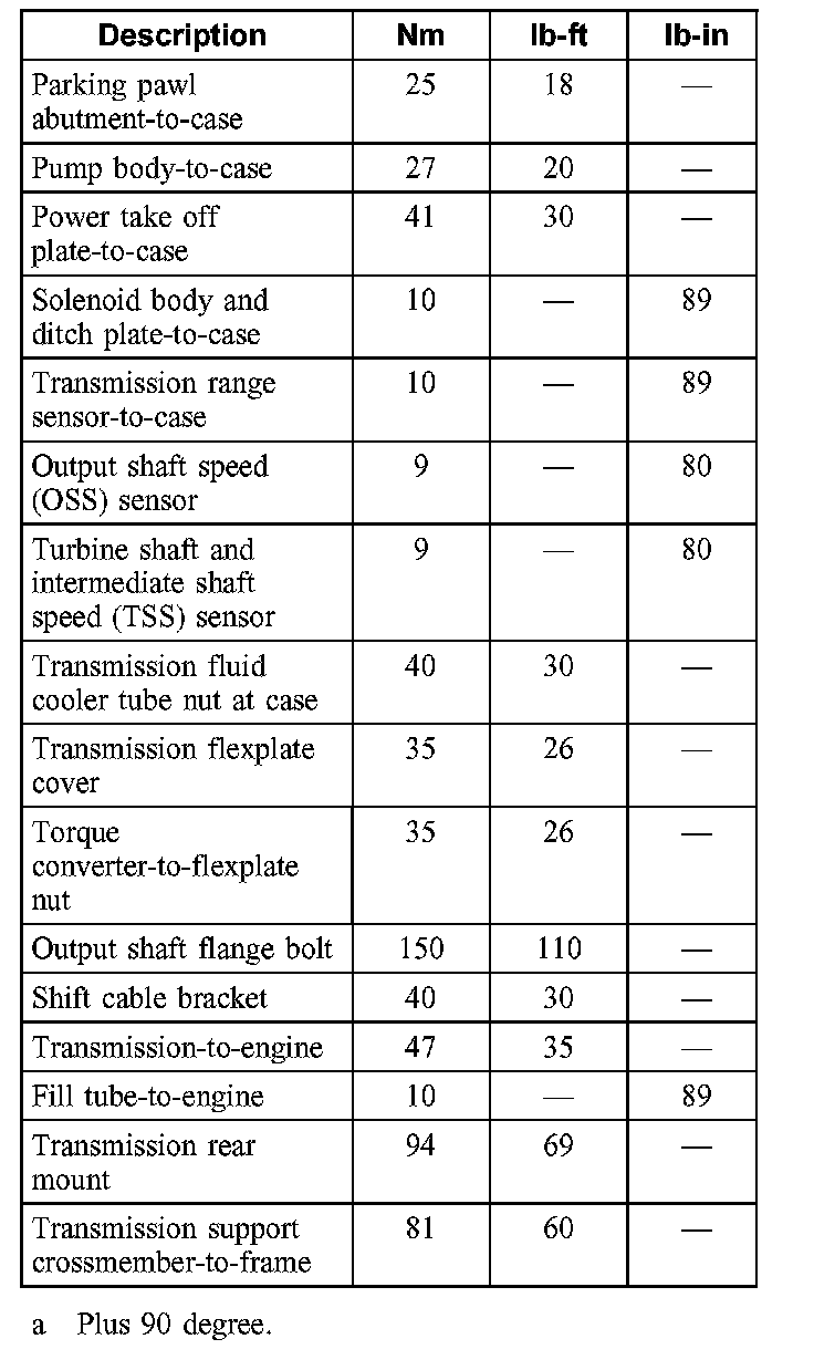 Chart of Torque Specifications