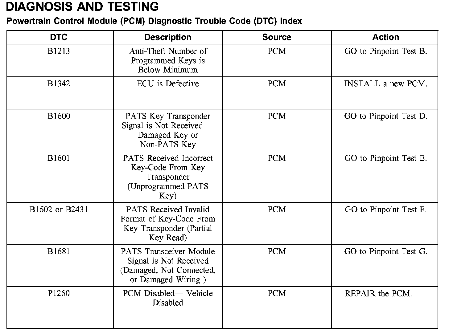 Powertrain Control Module (PCM) Diagnostic Trouble Code Index