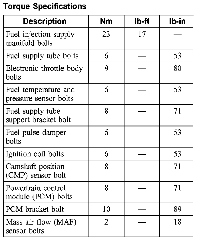 Torque Specifications: