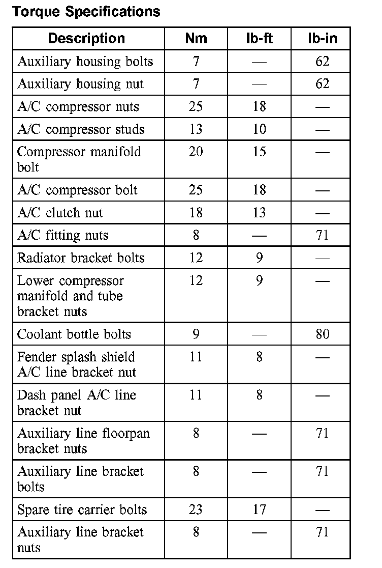 Torque Specifications:
