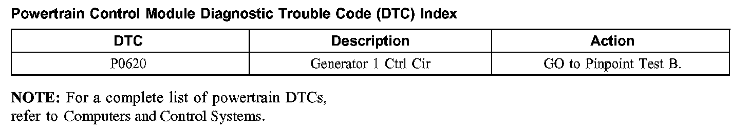 Powertrain Control Module Diagnostic Trouble Code (DTC) Index