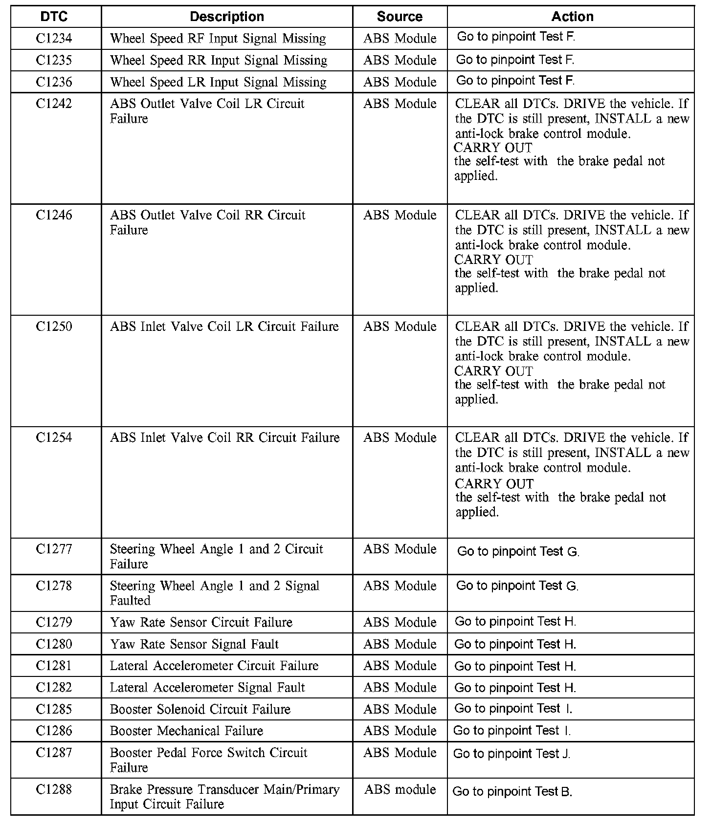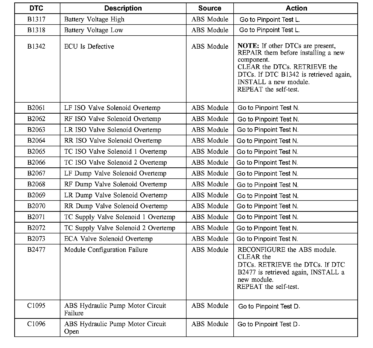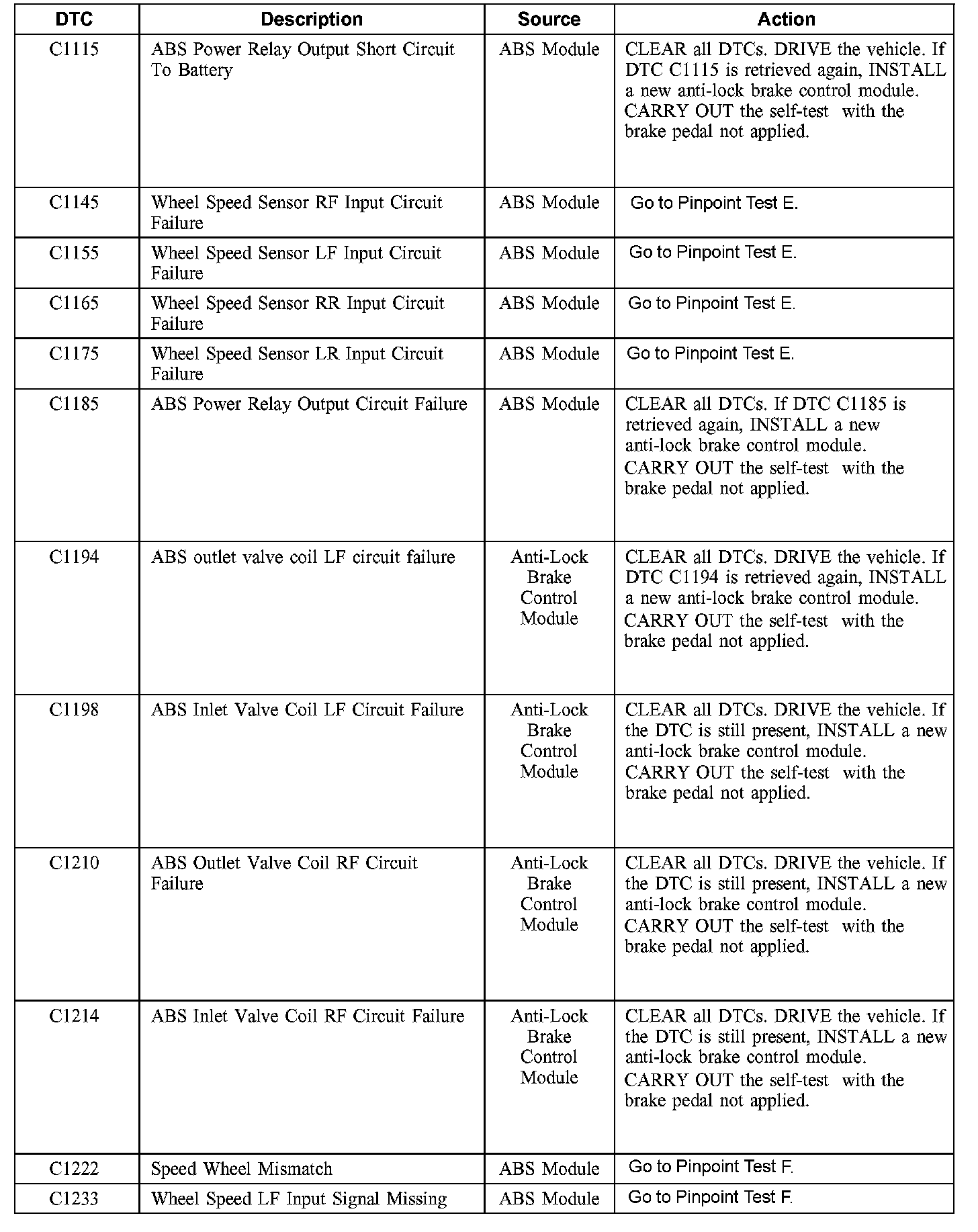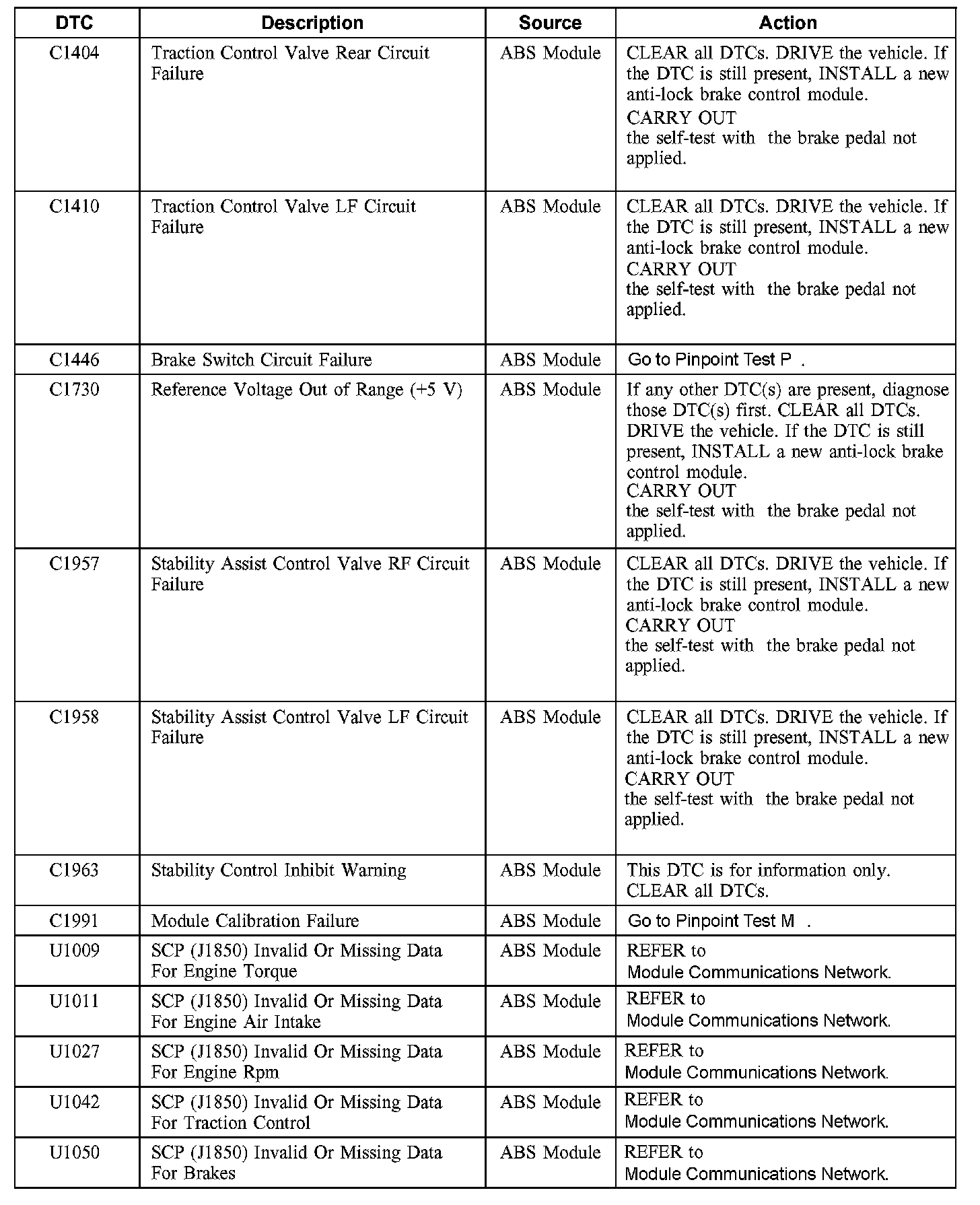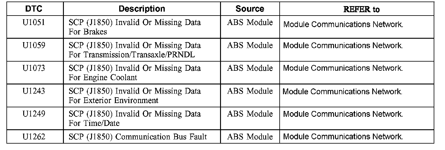 Anti-Lock Brake System (ABS) Module Diagnostic Trouble Code (DTC) Index Part 4 Of 5: