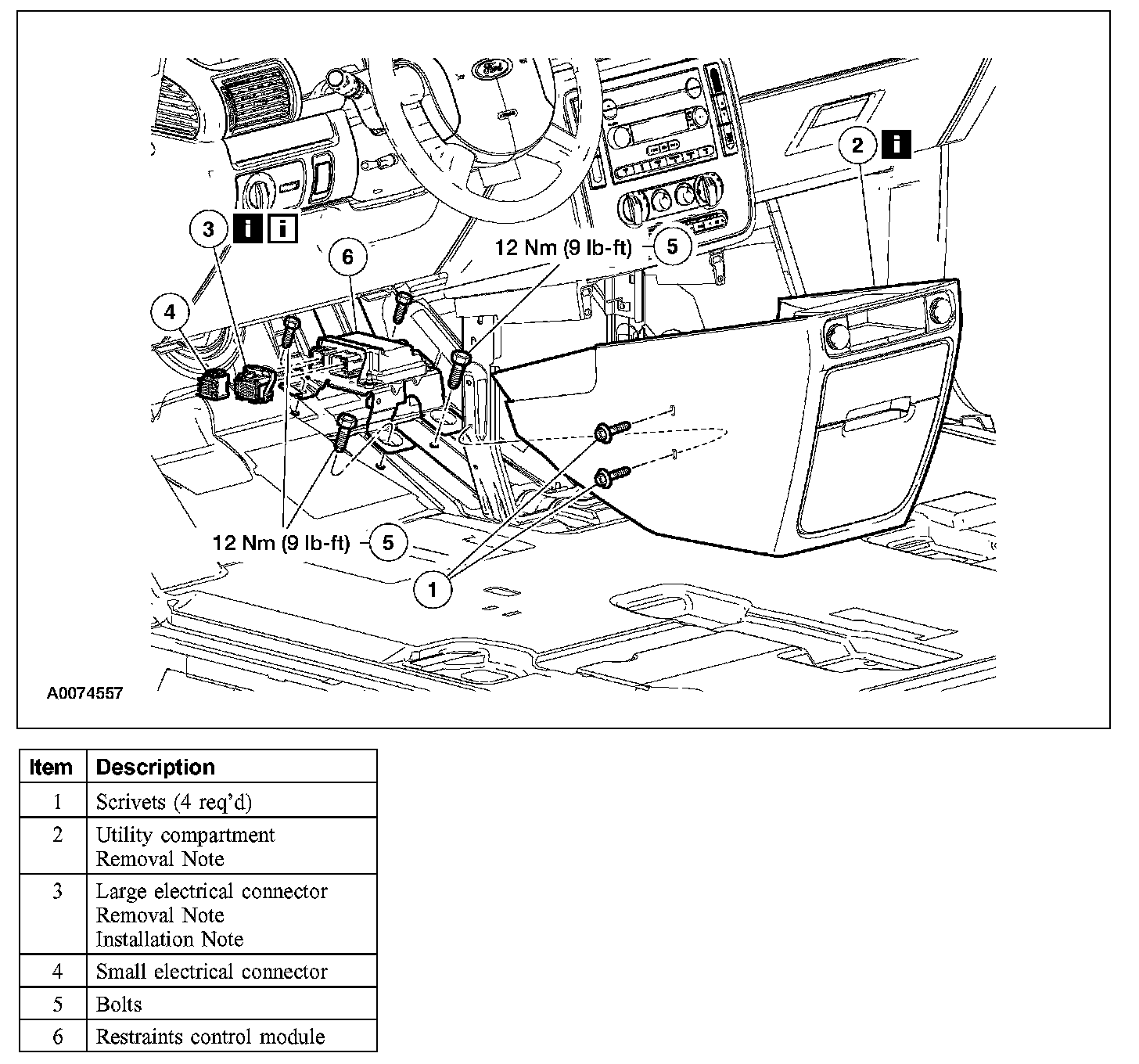 - When installing a new restraints control module (RCM), always make sure the correct RCM is being installed. If an incorrect RCM is installed, erroneous DTCs will result.