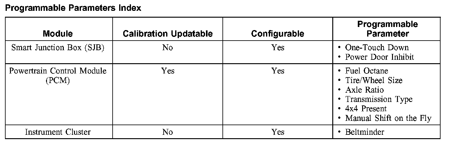 Programmable Parameters Index: