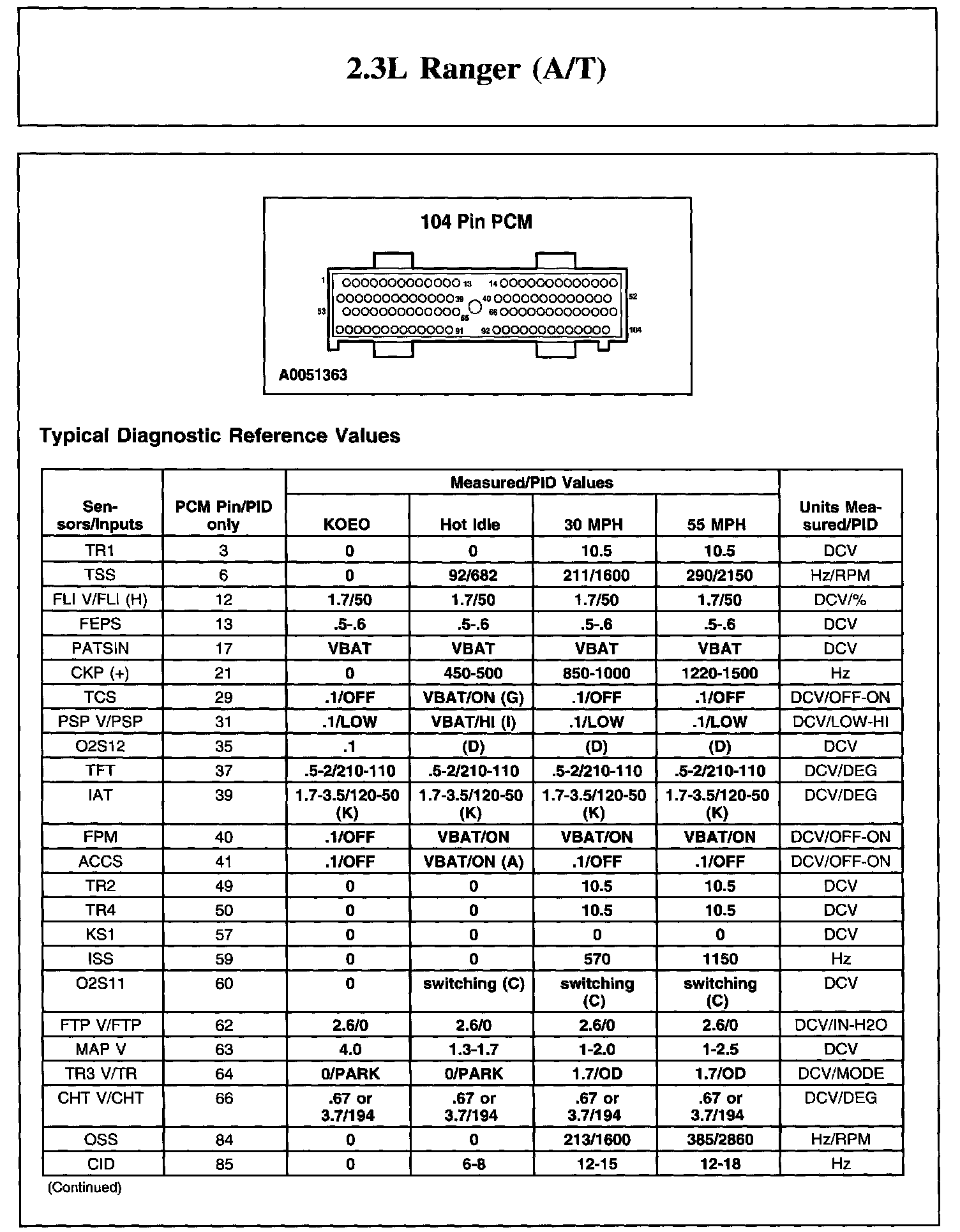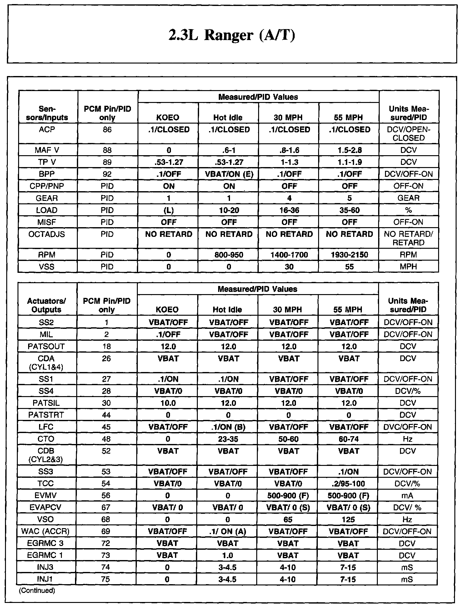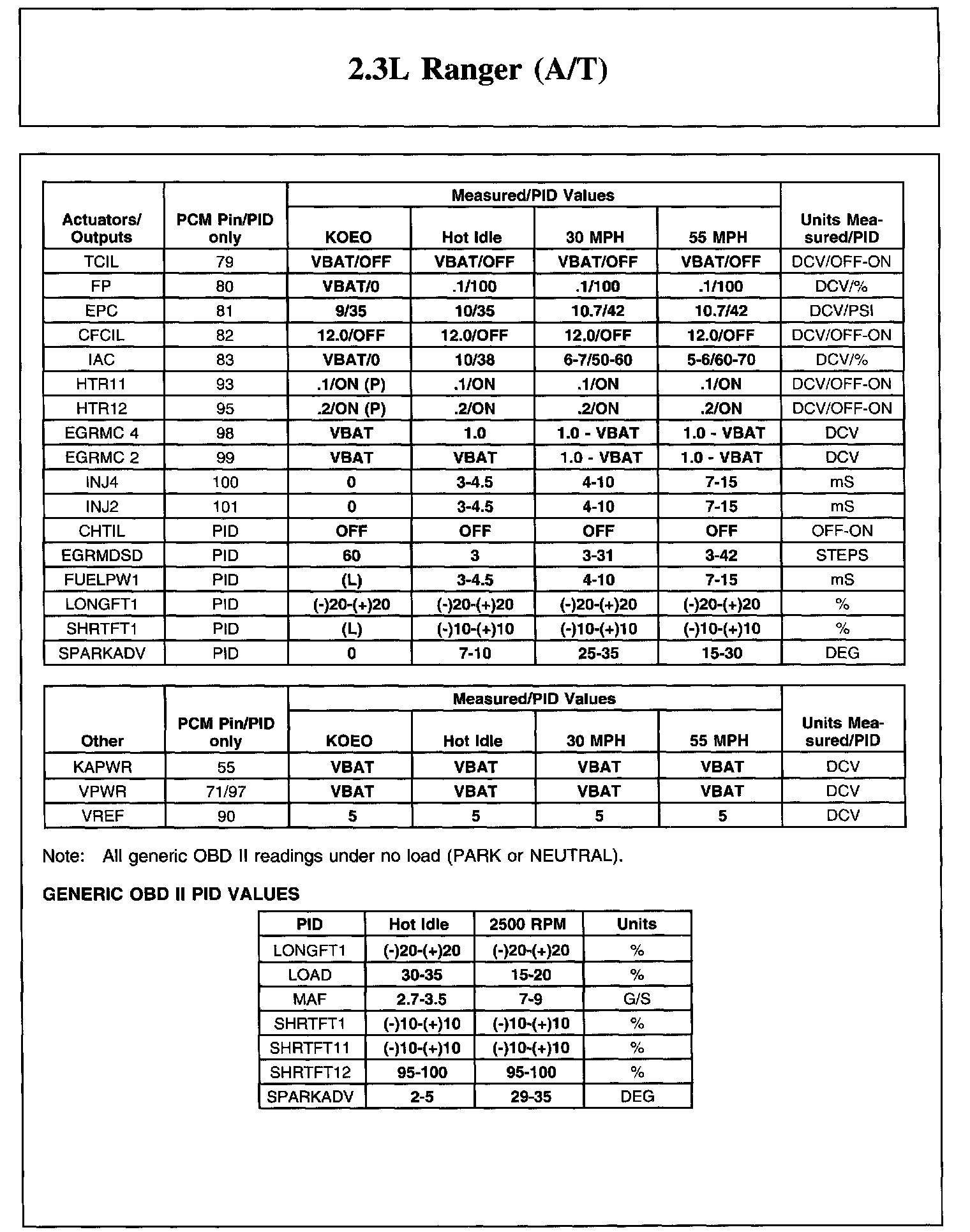 The Typical Diagnostic Reference Value Charts do not display fault PIDs. These are PIDs which indicate a hard fault with the circuit. They display a value of "YES" or "NO" and are PIDs ending with an "F".