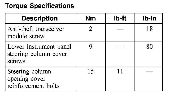 Torque Specifications: