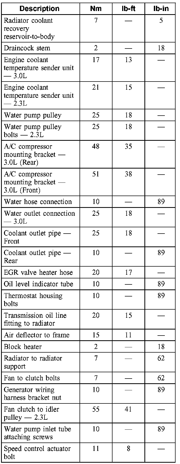 Torque Specifications