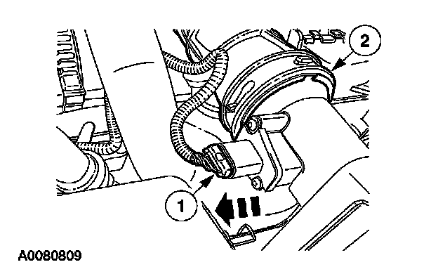 2. Disconnect the mass air flow (MAF) sensor electrical connector and the air cleaner outlet pipe.
