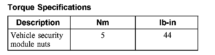 Torque Specifications: