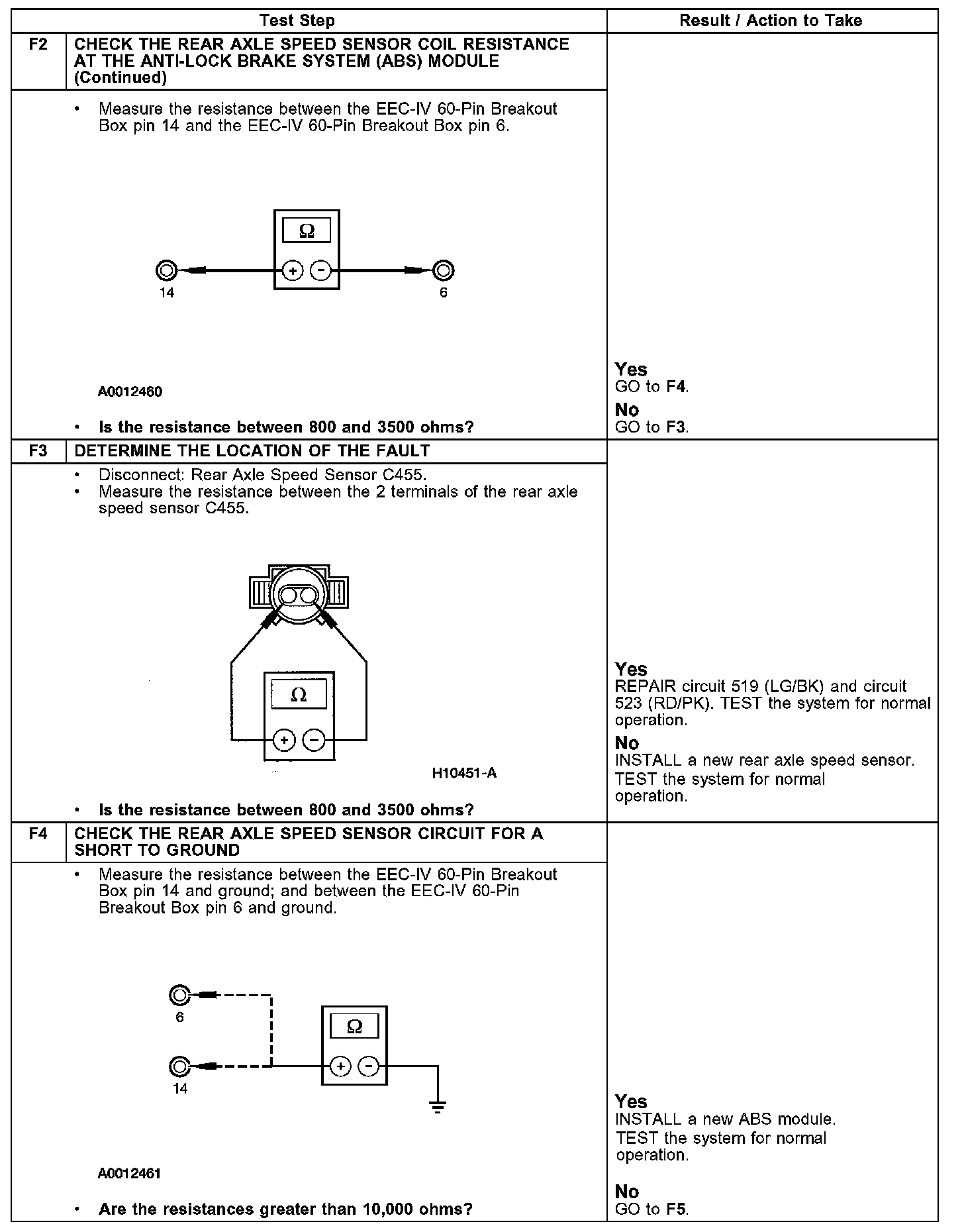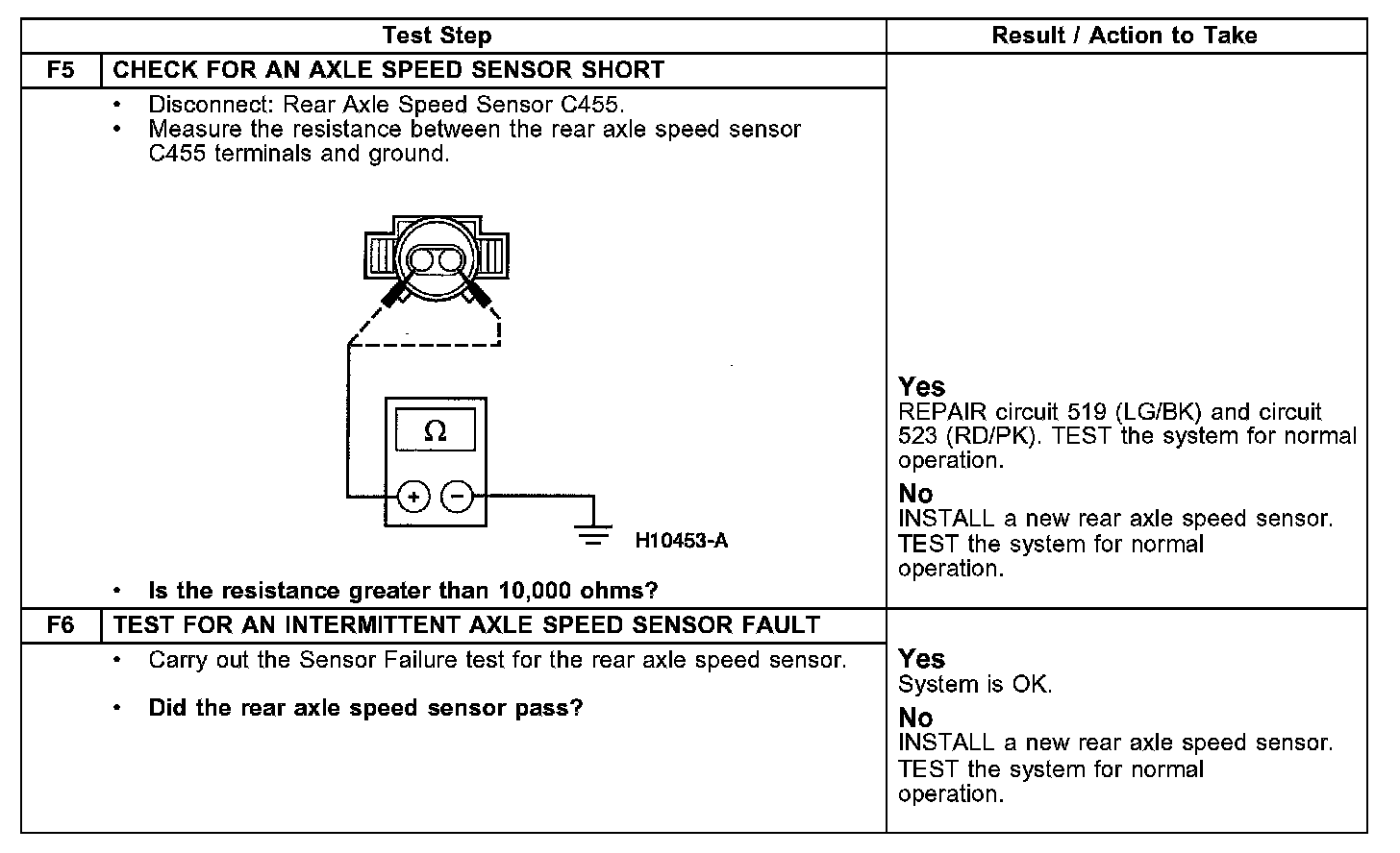 PINPOINT TEST F: DTC C1230-REAR AXLE SPEED SENSOR INPUT CIRCUIT FAILURE