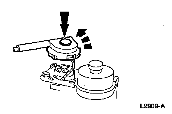 - Push in the locking arm on the speed control actuator cable cap and rotate the cap counterclockwise.