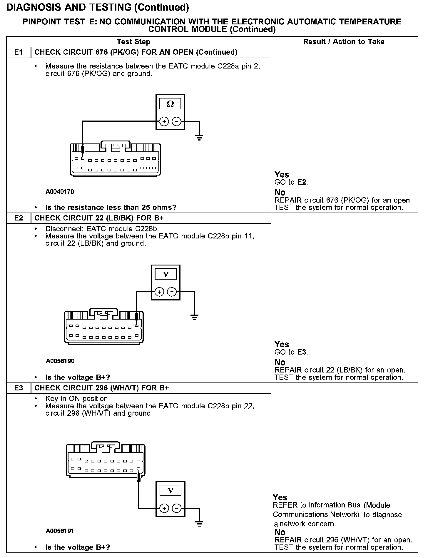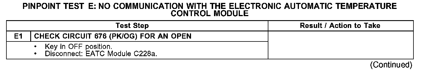 PINPOINT TEST E: NO COMMUNICATION WITH THE ELECTRONIC AUTOMATIC TEMPERATURE CONTROL MODULE