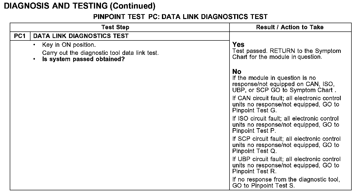 PINPOINT TEST PC: DATA LINK DIAGNOSTICS TEST