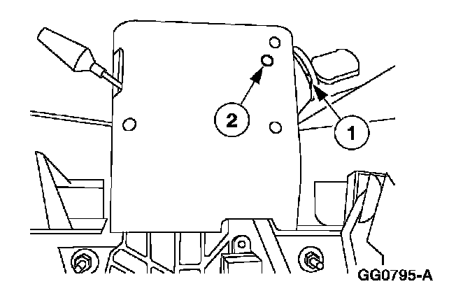 2 Using a 1/8-inch drift, press the ignition switch lock cylinder release pin through the access hole while pulling out the ignition switch lock cylinder.